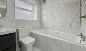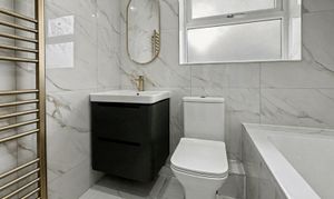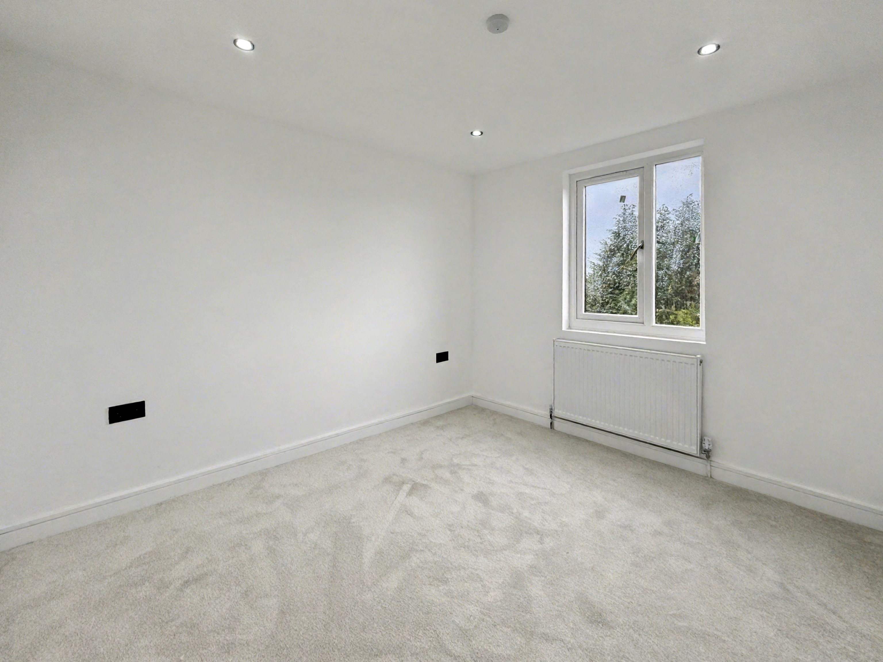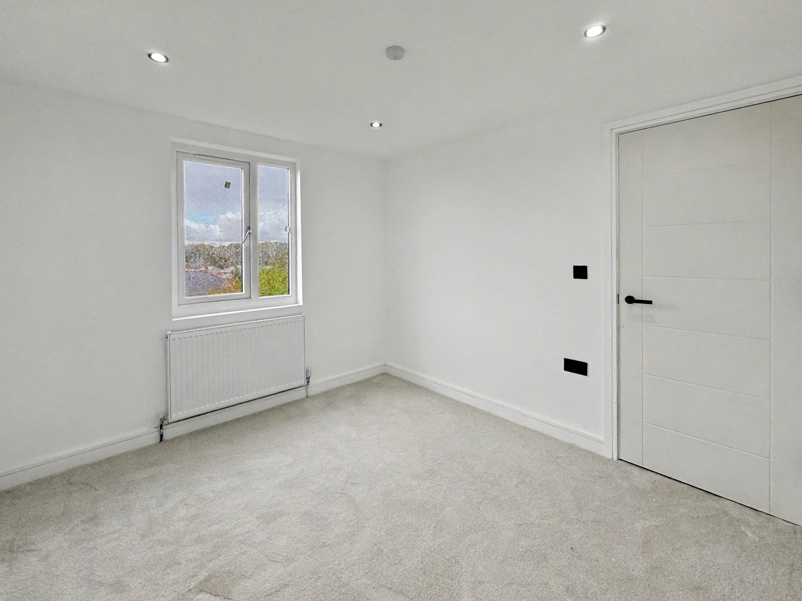 The property has been refurbished to a high standard both internally and externally, showcasing a fresh, modern aesthetic complemented by a striking white-rendered exterior.