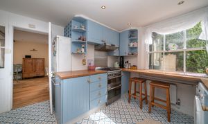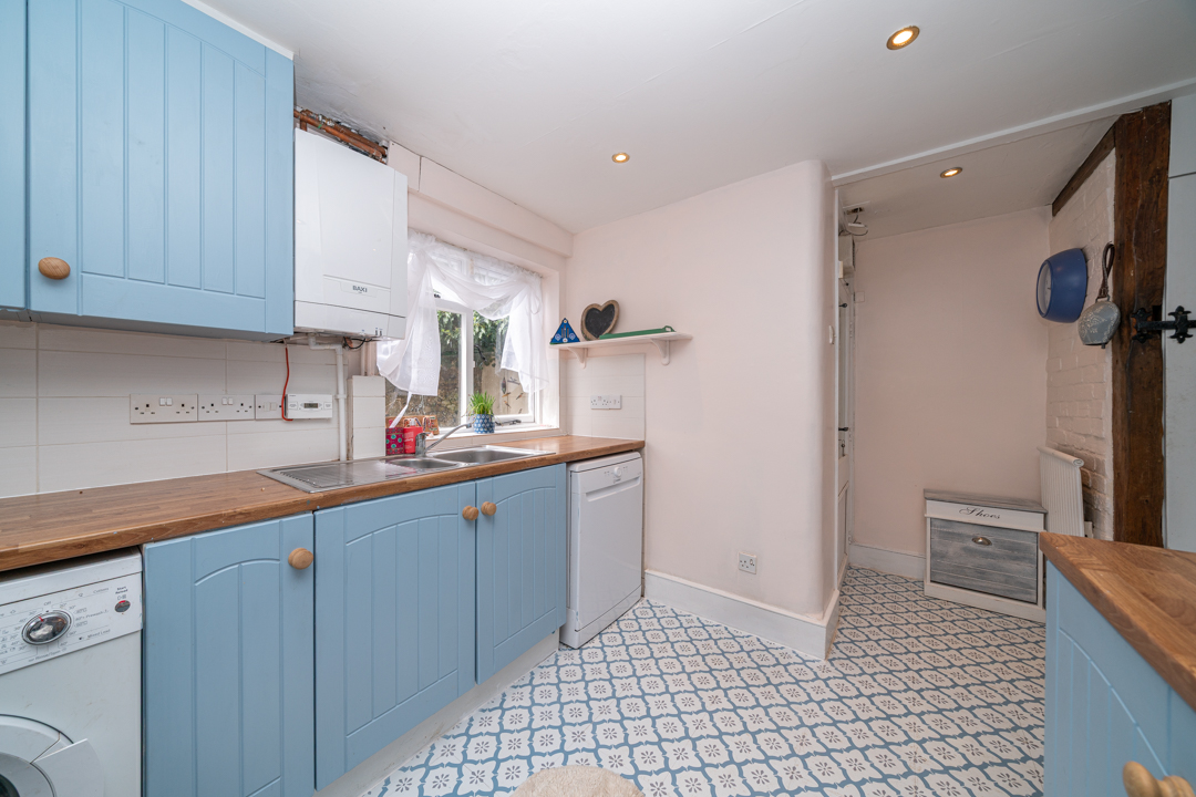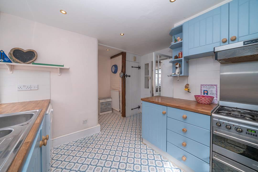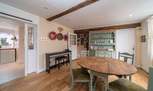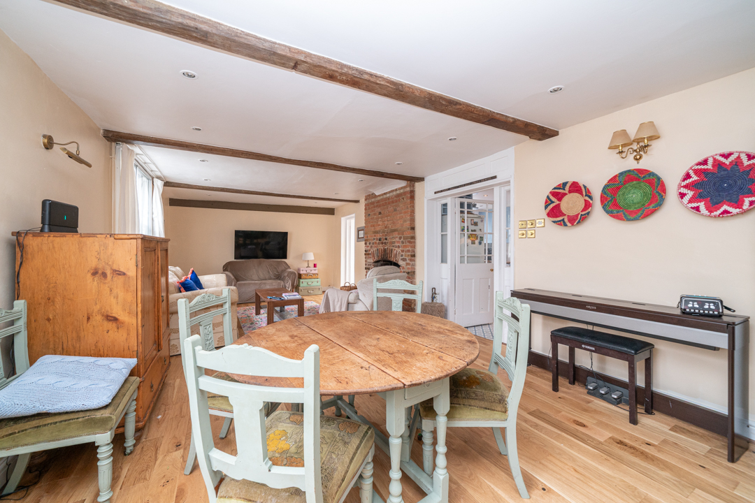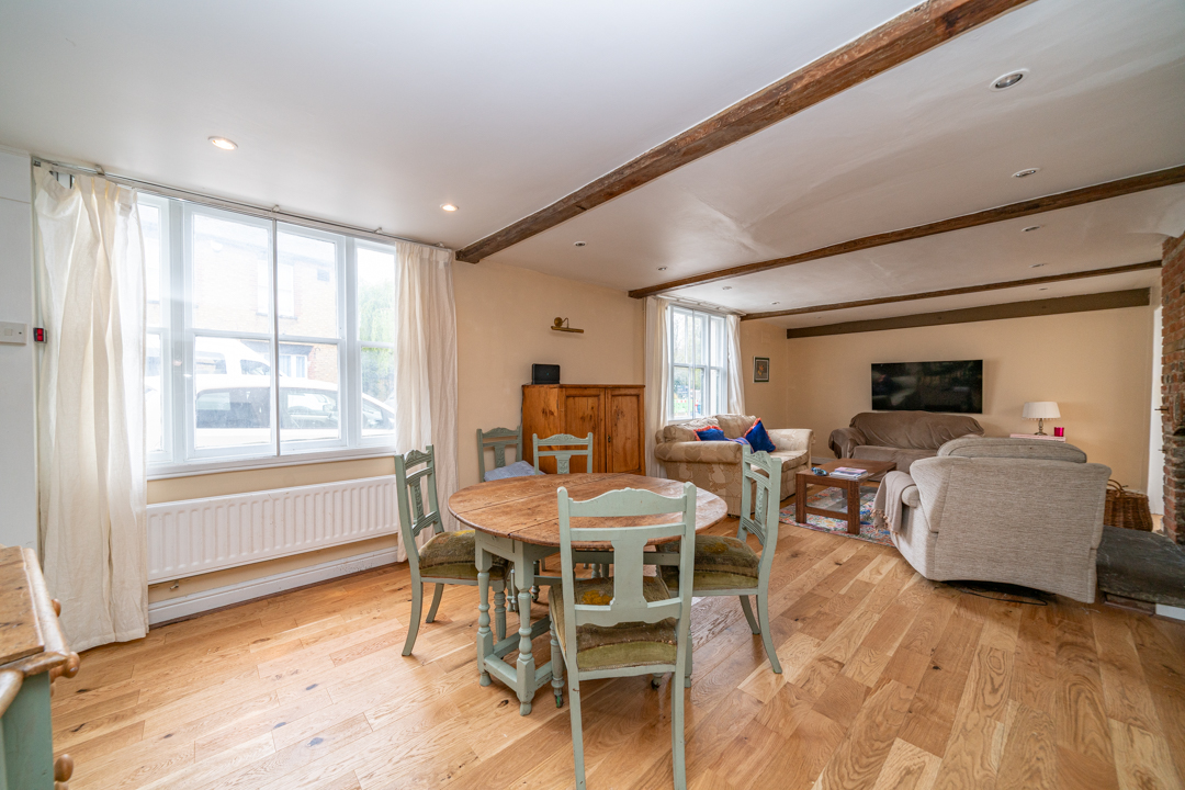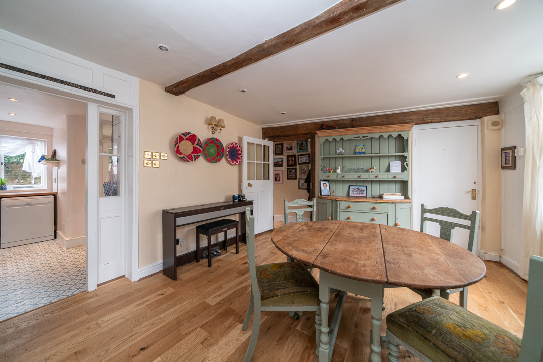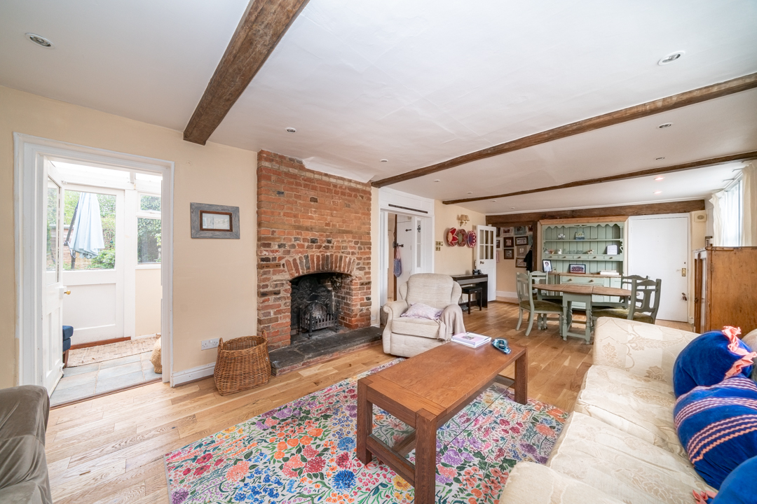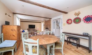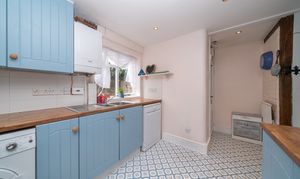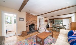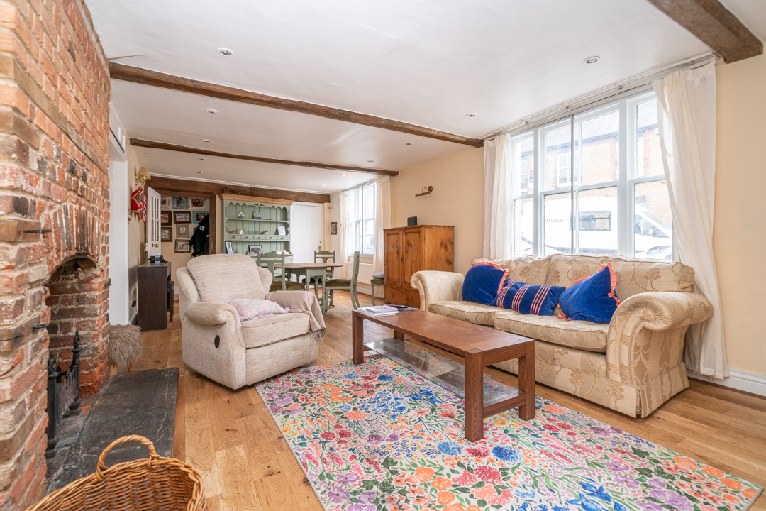 Positioned on Redbourn’s High Street, this bright and spacious home showcases a wealth of original features, including exposed beams, brickwork, feature fireplaces, and oak flooring throughout. The entrance opens into a generous lounge/dining room with striking beams and a feature fireplace, creating a warm and inviting living space. The fully fitted cottage-style kitchen offers a range of base and wall units, along with space for appliances.