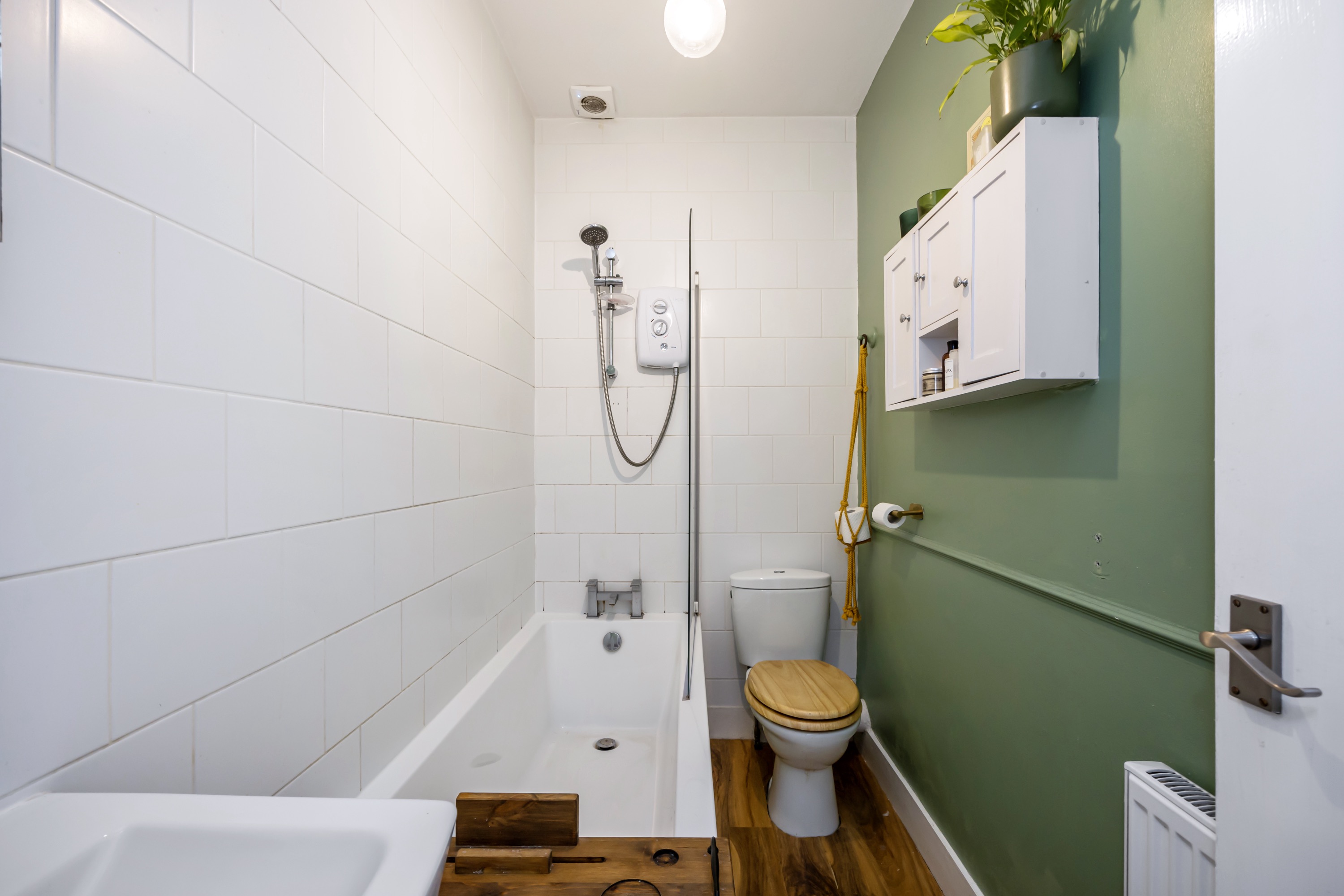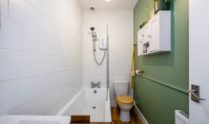 Once inside, you are greeted by a spacious hallway with ample space for shoes and coats. To the left, you will find the generously proportioned bedroom overlooking the rear aspect; with plenty of space for free standing storage. The modern bathroom is fully tiled with shower over bath, hand basin and W/C.