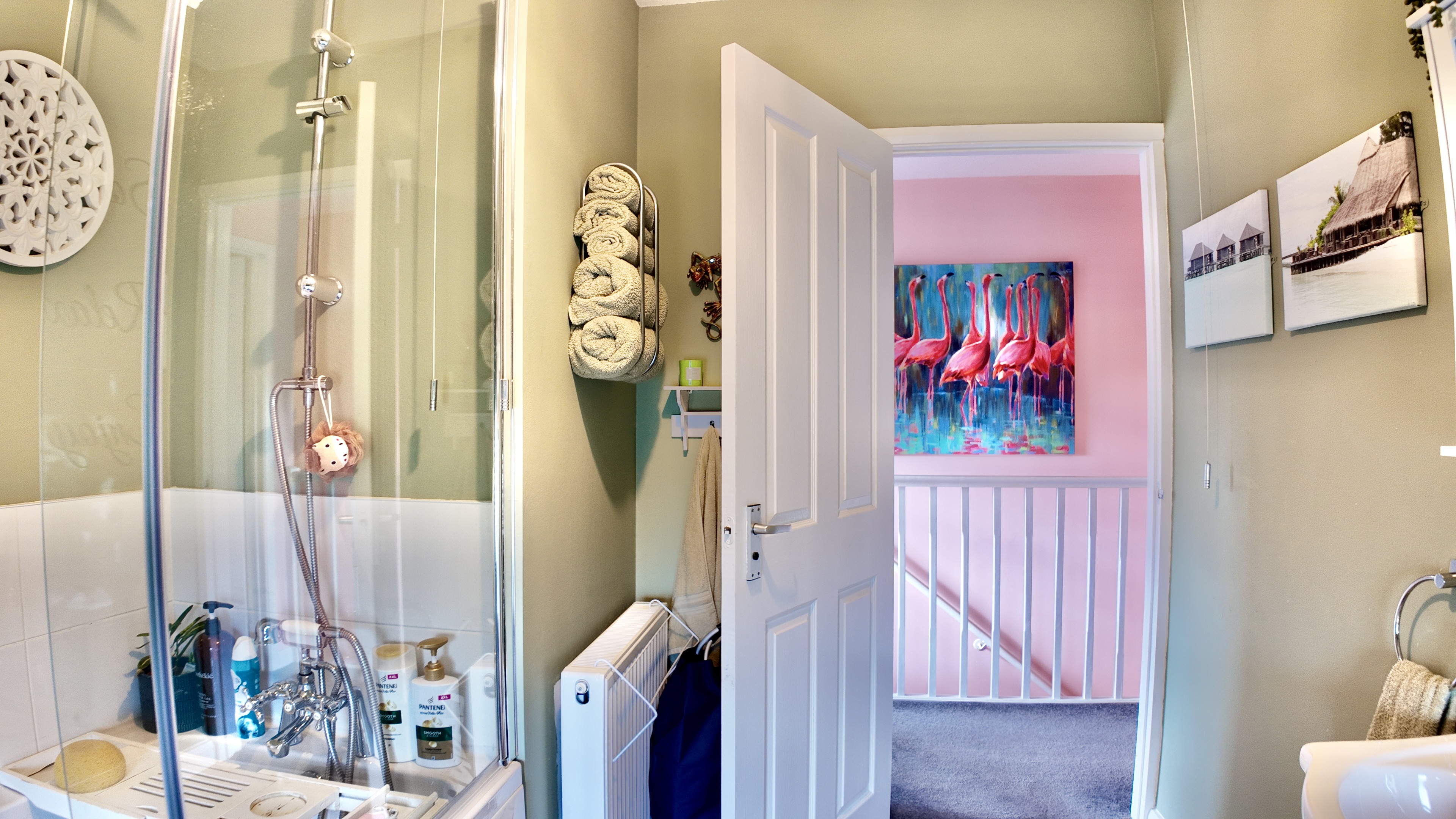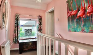Venture upstairs to discover the family bathroom on the first floor, complete with all the essentials for your daily routines. Relax and unwind in this tranquil space where you can rejuvenate after a long day.