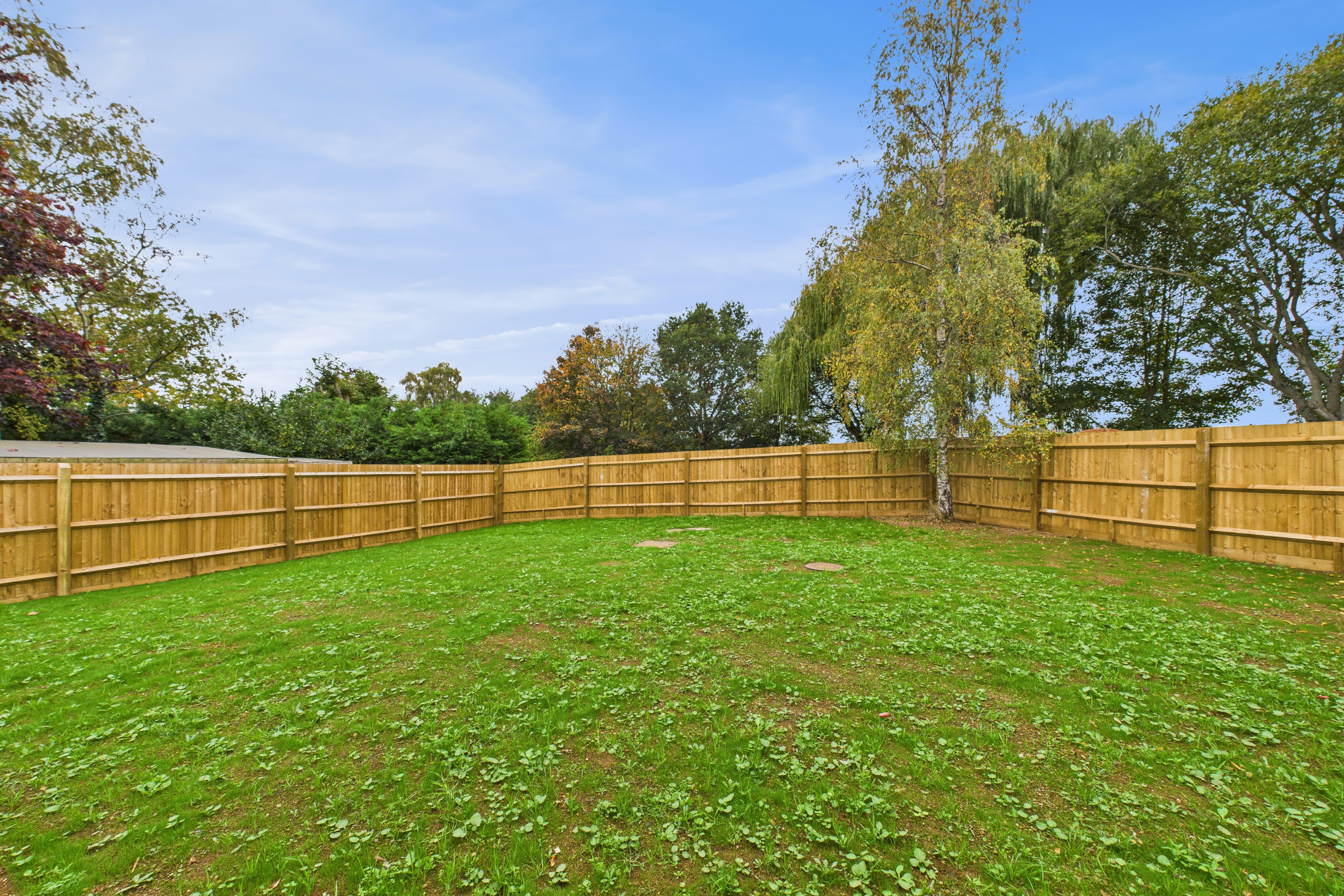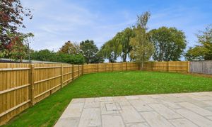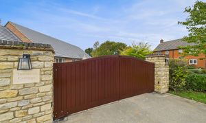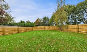 The private rear garden is deceptively large, featuring a newly laid patio and lawn, fully enclosed by a well-maintained fence. There are outdoor taps and electrical sockets. To the front, double electric gates with a manual override open onto a block-paved driveway leading to a large double garage with an electric door, lighting, and plant room containing the air source and hot water systems. It is also partly boarded for extra storage. Outside lighting is set on a timer, adding evening ambience and security.