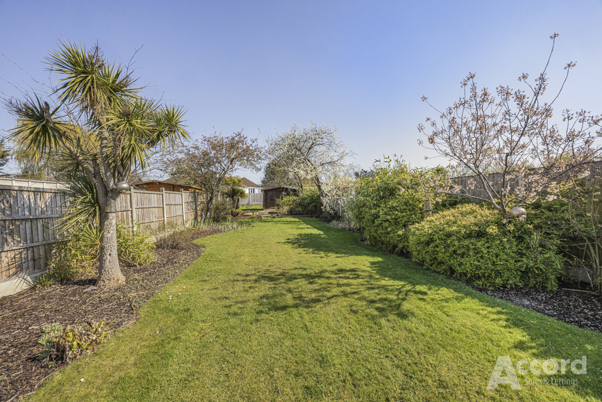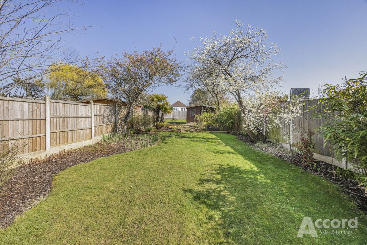 Outside is where this home really comes into its own. The rear garden is a major feature, extending to around 57 metres in length, with a wider section to the rear that gives you even more outside space to enjoy. There is a large lawn, mature planting, a patio area and a detached shed, creating plenty of room for children to play, summer gatherings or future landscaping ideas. To the front, the property has a private driveway with parking for several cars.