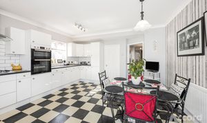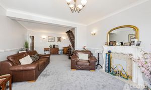 Inside, the property opens into a welcoming hallway with access to three ground floor bedrooms, including two good size bay fronted rooms. There is also a well kept family bathroom, a useful utility room and an attached garage. To the rear, the home opens into a spacious kitchen diner with plenty of storage and worktop space, while the main reception room stretches across the back of the property and provides an excellent living and entertaining area with doors opening onto the garden. Upstairs, the first floor offers a further bedroom and access to eaves storage, making it a practical choice for a growing family or anyone needing space to work from home.