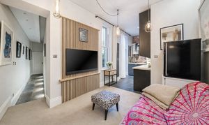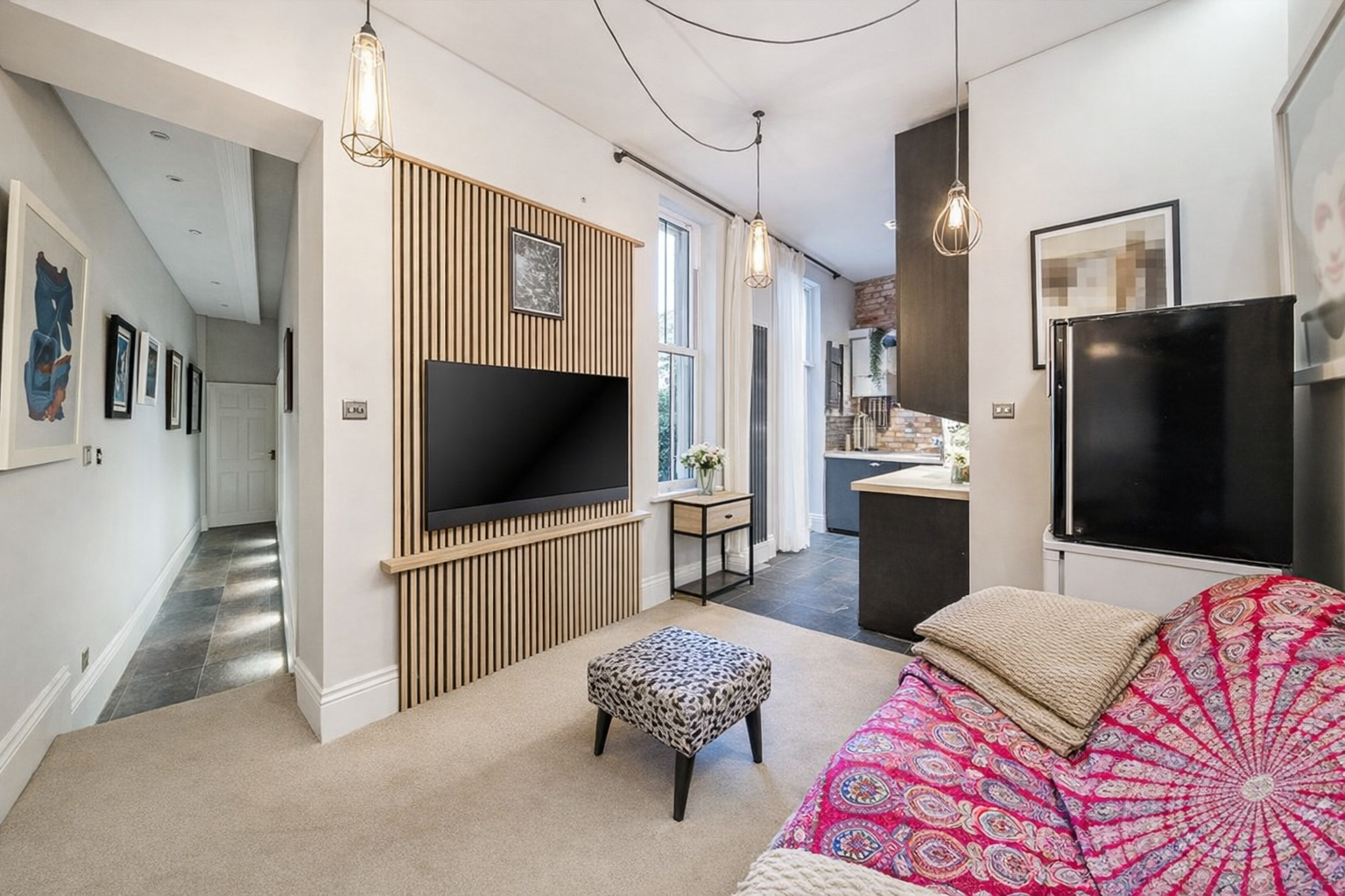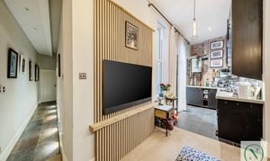 This beautifully presented two-bedroom ground floor apartment on Morland Road offers stylish interiors, character features and a fantastic 55ft private rear garden. The bright hallway leads into a modern open-plan kitchen and reception room, finished with exposed brickwork, bespoke wall panelling and feature lighting, creating a warm and inviting space ideal for relaxing or entertaining.