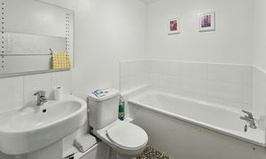 There are two well-appointed double bedrooms, thoughtfully positioned to maximise comfort and privacy. The principal bedroom benefits from its own en-suite shower room, while the second bedroom is served by a stylish main bathroom complete with a bath and overhead shower.