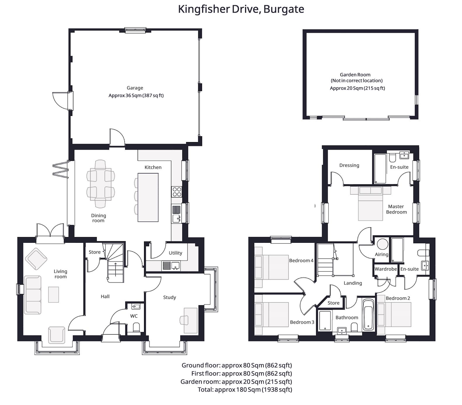Upstairs, four double bedrooms provide flexibility and comfort. The principal suite features a dressing room and ensuite shower room, while the second bedroom also enjoys its own ensuite - ideal for guests. Two further double bedrooms and a stylish 4-piece family bathroom complete this floor.