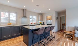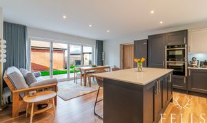 Spacious kitchen / dining room with bifold doors to the garden. Integrated Neff ovens and induction hob, appliances, quartz worktops.