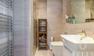 Spacious master suite comprising a large bedroom, with dual aspect windows, dressing room / walk-in wardrobe. The ensuite features a walk-in shower with rainfall shower head.