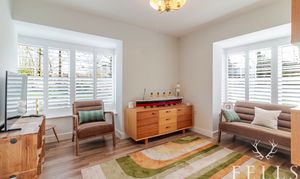 Dual aspect home office, flooded with natural light from 2 box-bay windows