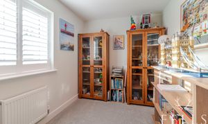 A substantial ‘Green Retreats’ garden room offers superb versatility as a gym, studio or additional workspace. A double garage (with internal access), three private parking spaces, 2 EV charging points and wholly owned solar panels enhance this home’s practicality and efficiency. The easy-care garden ensures low-maintenance living for busy families balancing work, and social life.