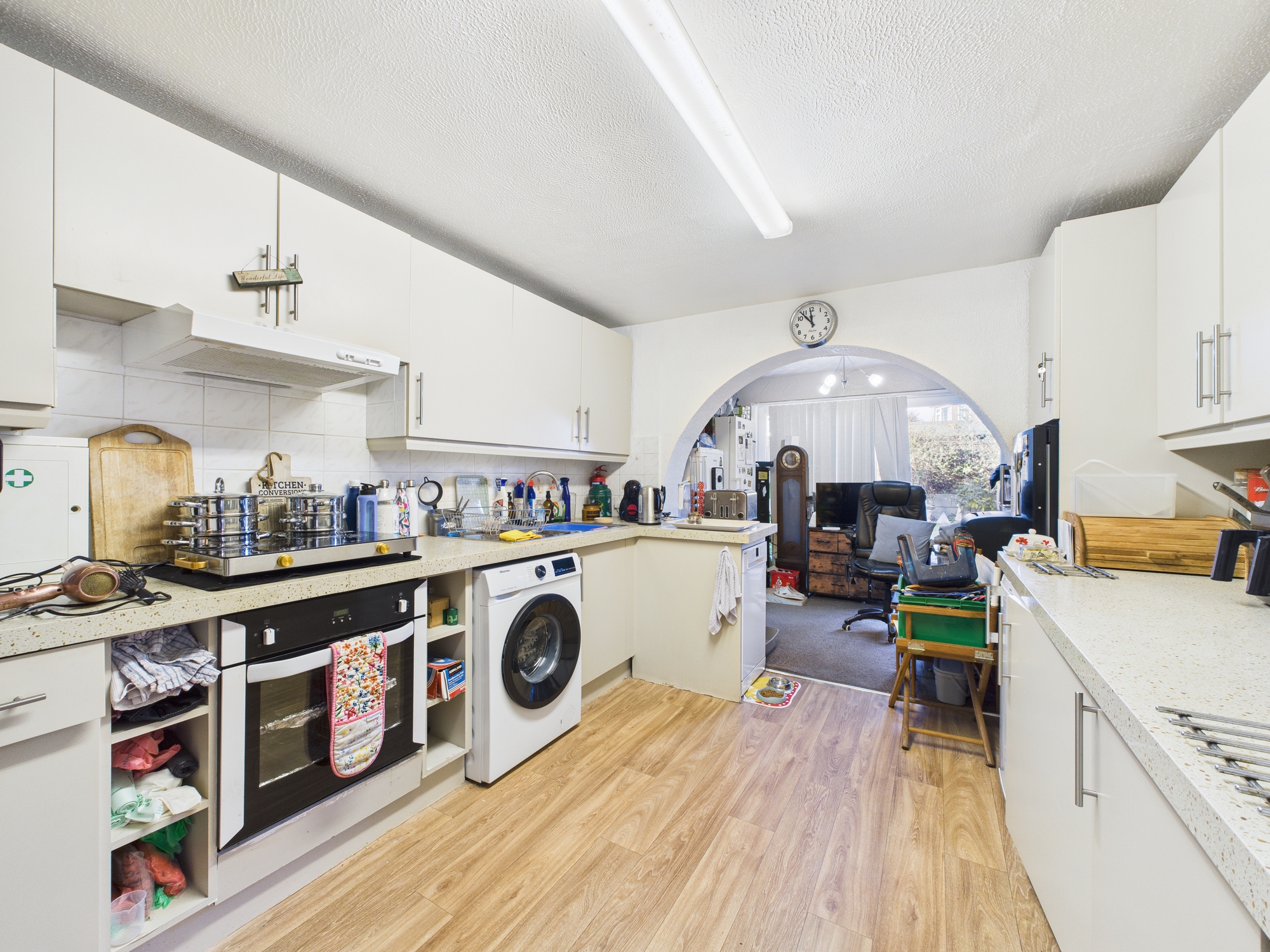 To the ground floor you are provided with an extended Lounge 15’10 × 14’8, fitted kitchen which is equipped with white units, integrated oven, plumbing for a washing machine and further space for appliances. An arch way provides access to an extended dining area with Upvc double glazed patio door leading to the rear garden. A bathroom to the ground floor adds to this convenient layout throughout the ground floor.