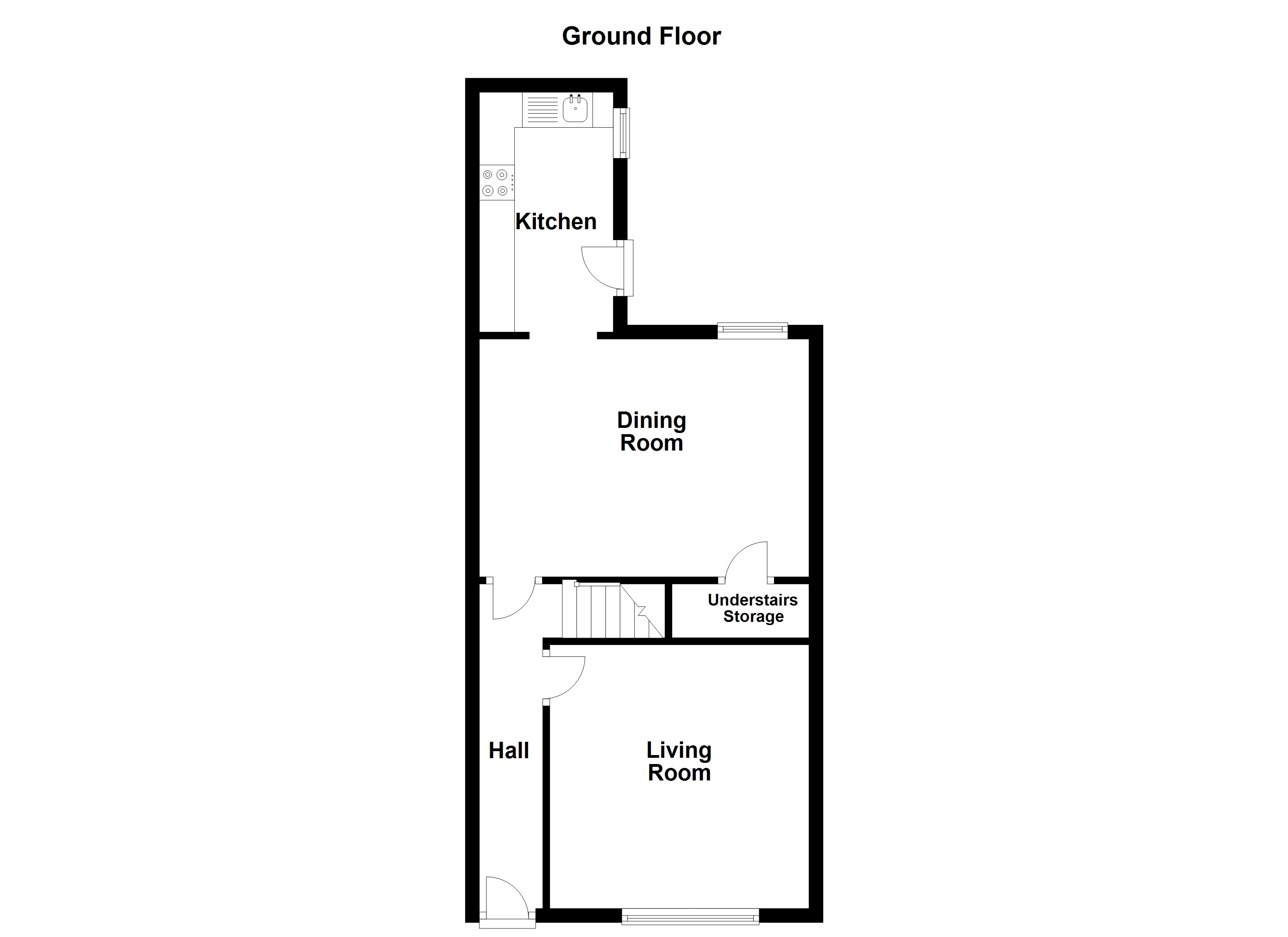 Light filled room with window to rear elevation. Internal door leading to under stairs storage area. Second internal door leading through to: