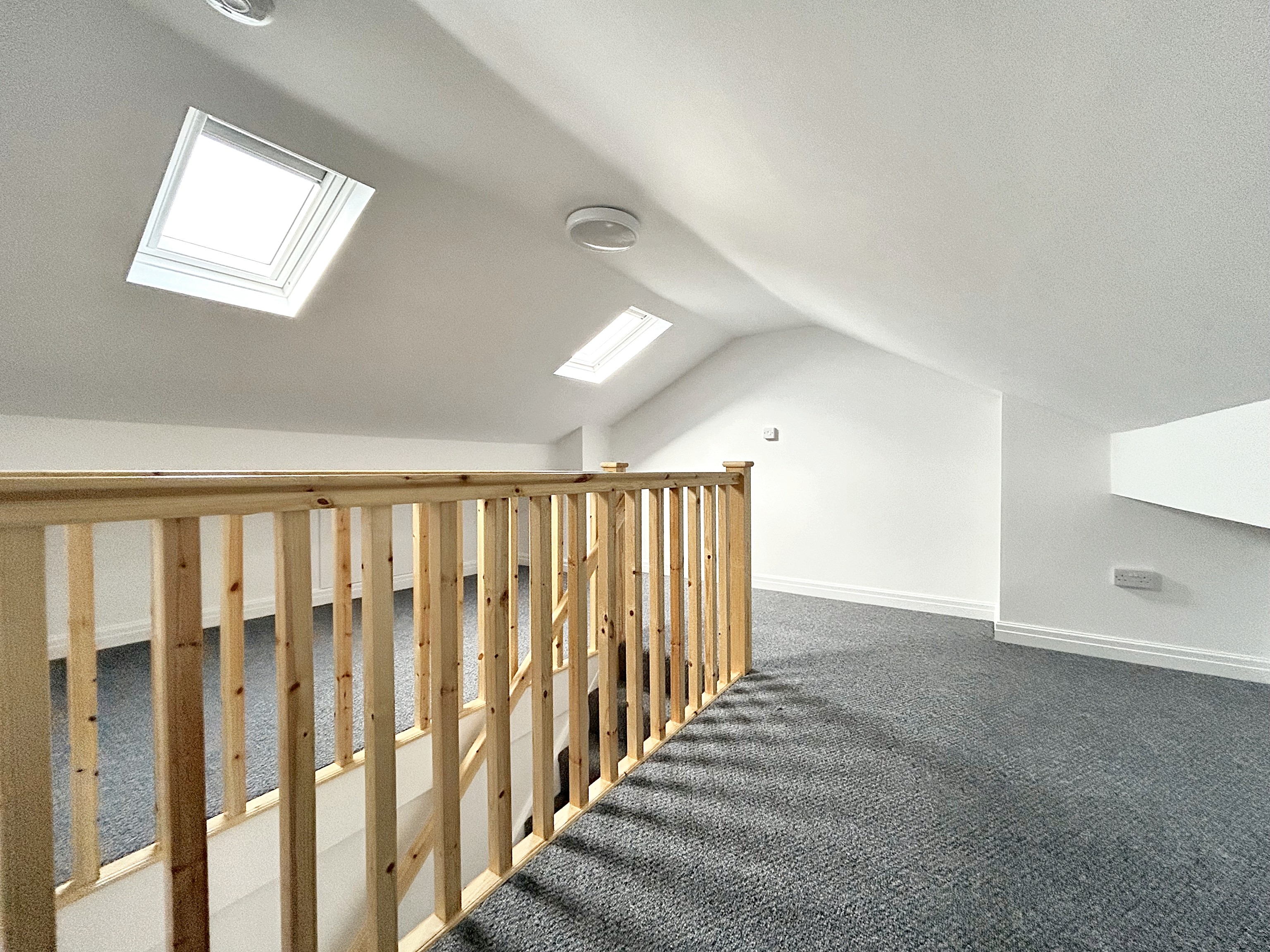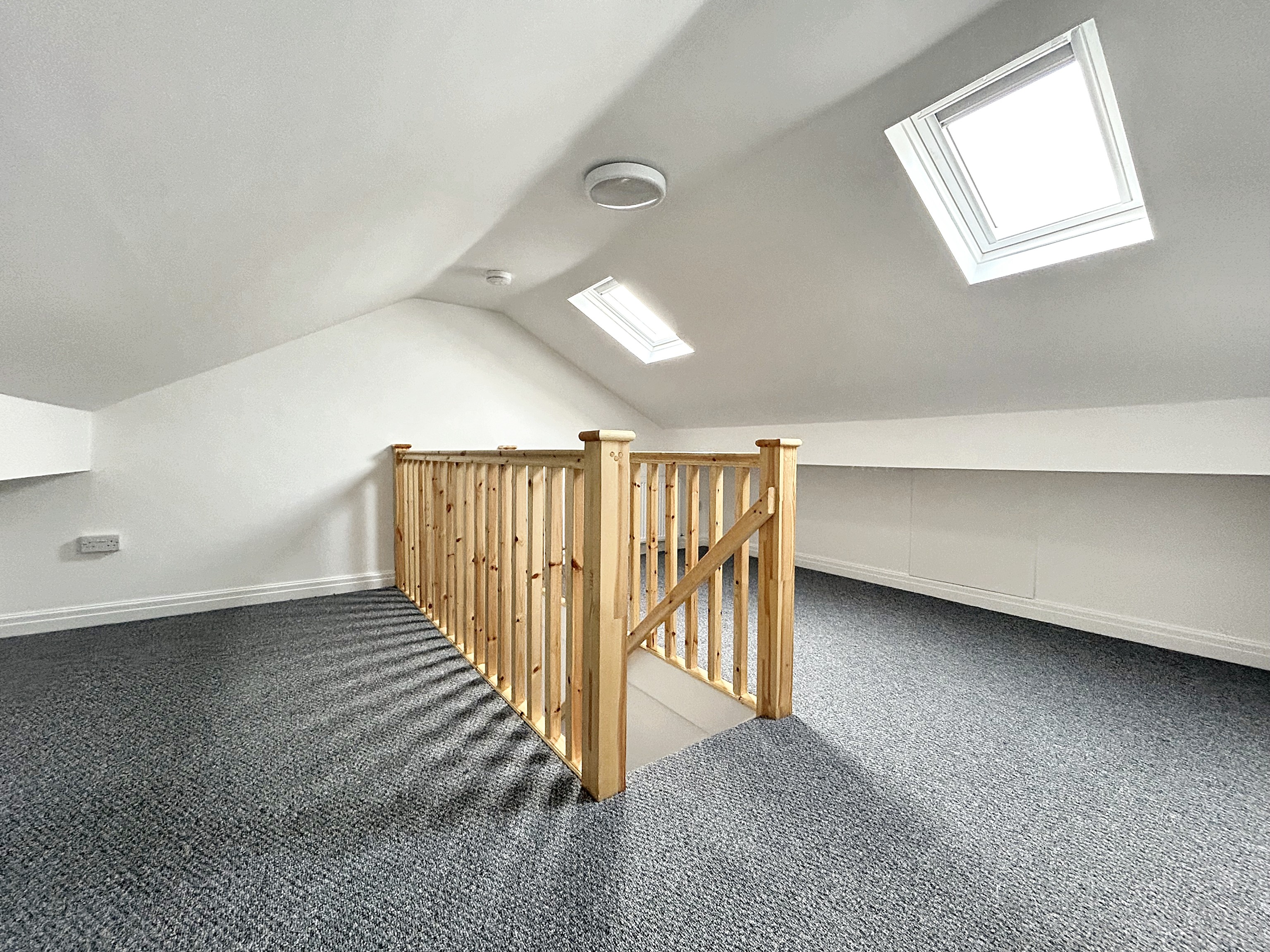 Converted Loft Space With Approved Planning. 2 Skylight windows. Measurements from standing height. Storage space under eaves.