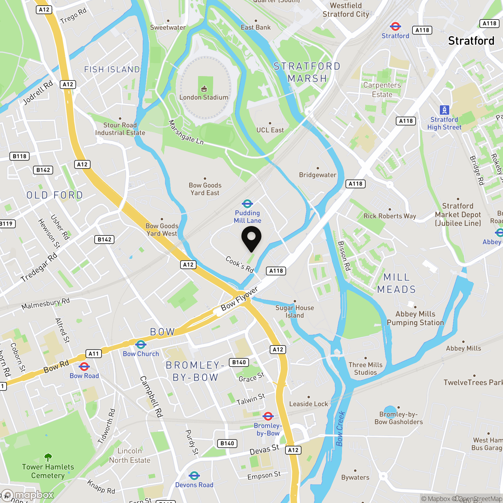 - Pudding Mill Lane 0.3 Miles (DLR) Bow Church Station 0.6 Miles (DLR)