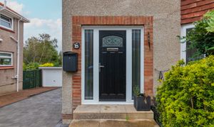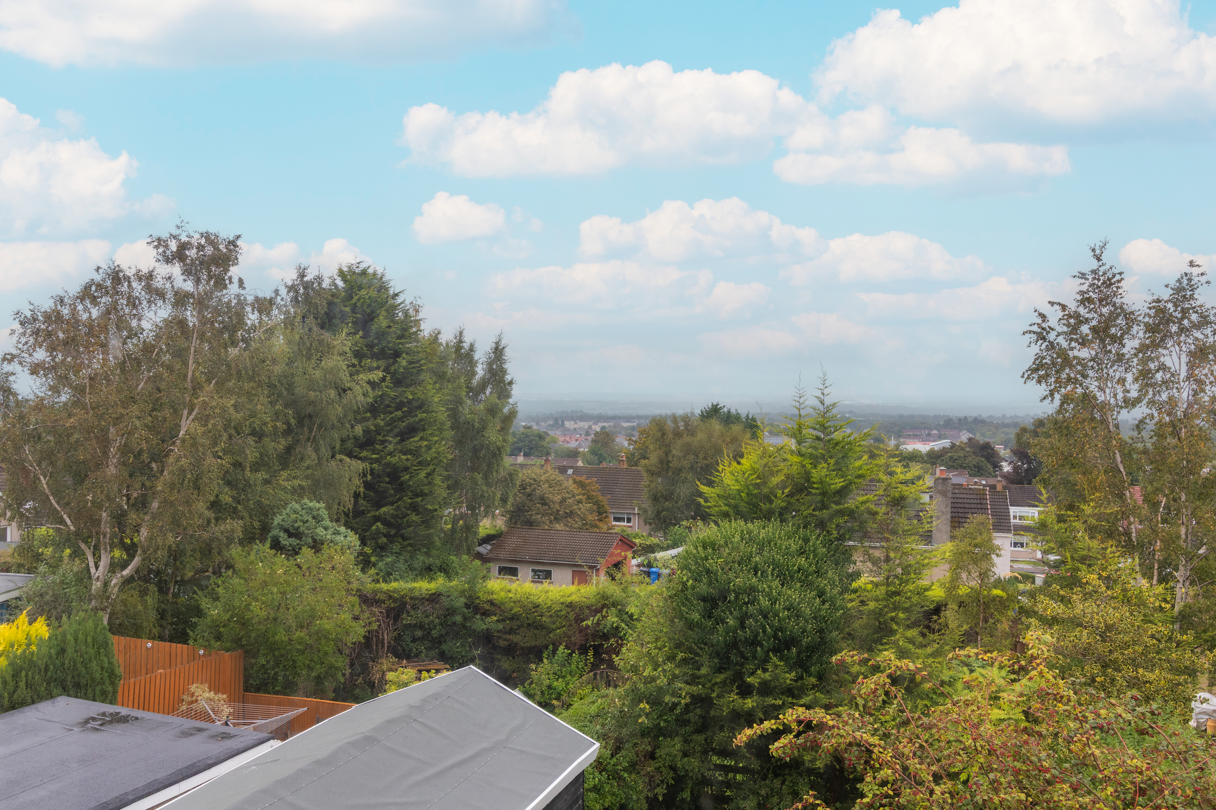 Externally, the villa sits within well-maintained mature gardens to the front and rear. To the side, a newly laid monoblock driveway provides parking for several vehicles and leads to a single garage. Additional features include a new composite entrance door, double glazing, gas central heating, and breathtaking open views across Lanarkshire towards the Campsie Hills.