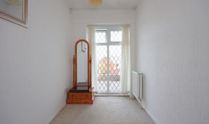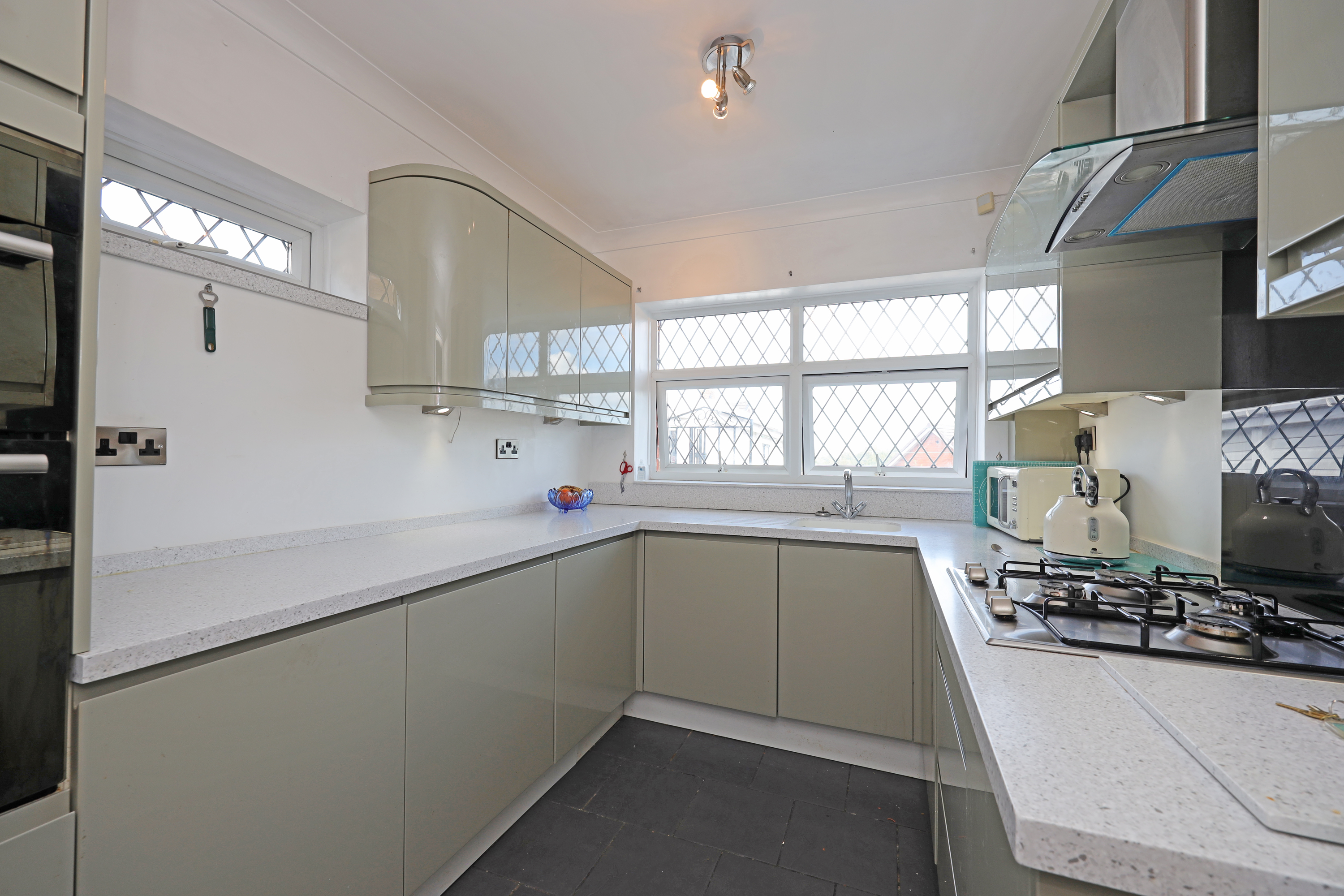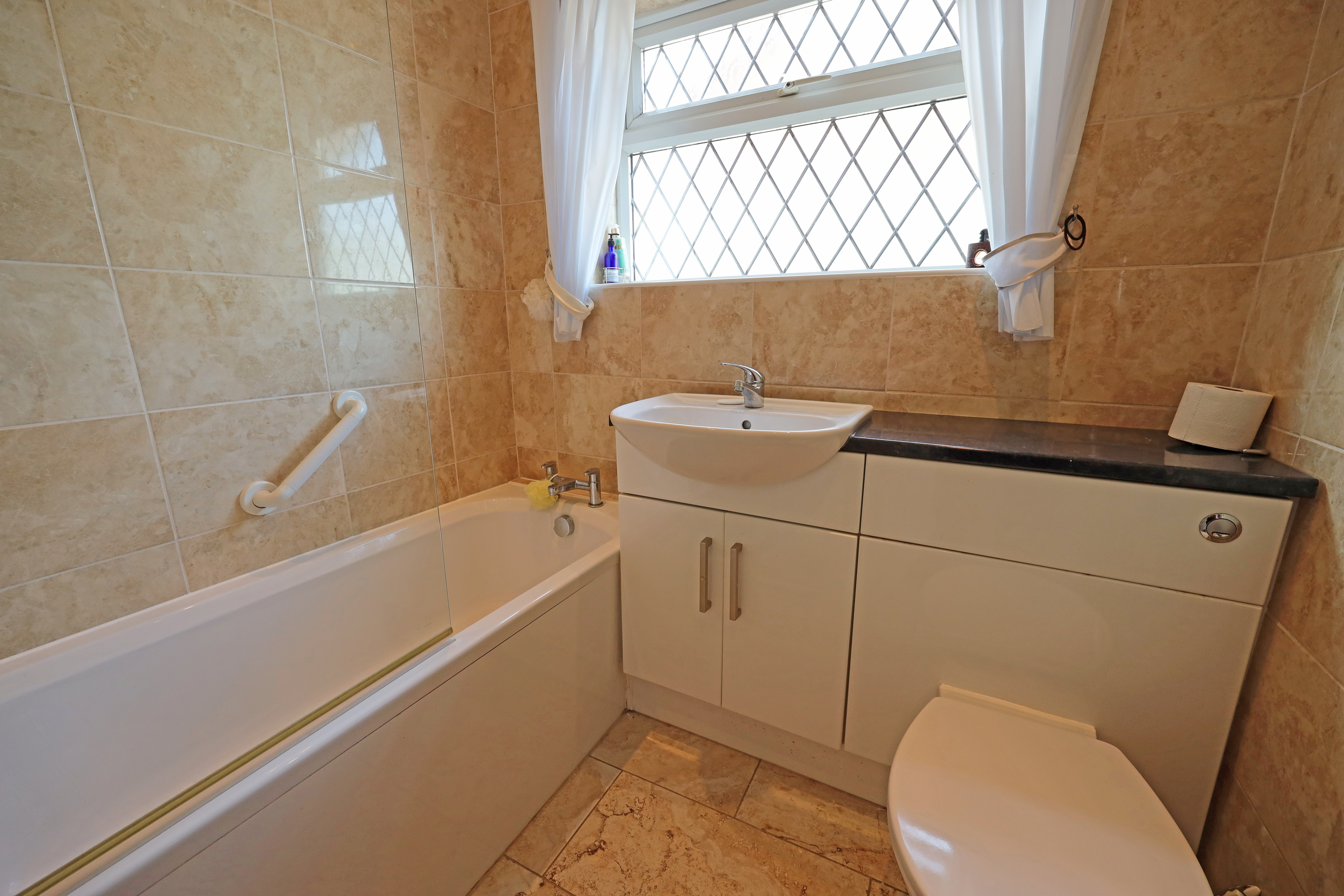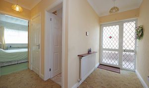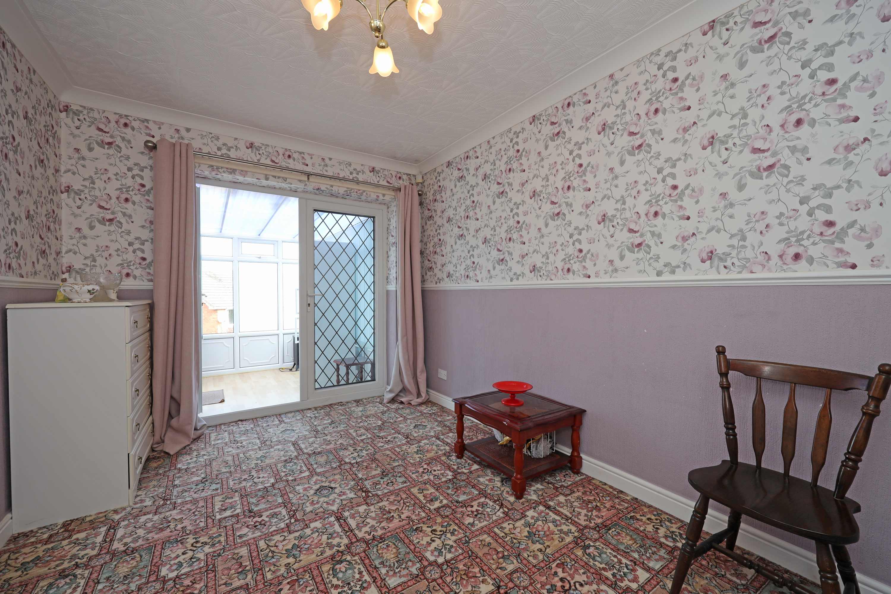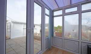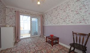 Side access into a spacious hallway, giving access to all rooms with linen cupboard, separate store cupboard and access to the loft which houses the central heating boiler. Immediately to the left is a modern fitted kitchen with rearview window and gloss units having integrated appliances; comprising fridge, washing machine, electric fan oven/grill and gas hob with extractor. There is a spacious lounge with a coal effect gas fire having marble surround and a large picture window overlooking the front aspect. The main bedroom has fitted wardrobes to one wall, with front facing window. The second bedroom has double patio doors leading through to a UPVC conservatory with side patio doors opening onto the garden. A smaller third bedroom also has a window outlook to the rear aspect. A tiled bathroom is fitted out with a three piece suite comprising combined WC and vanity wash basin with mains shower over bath.