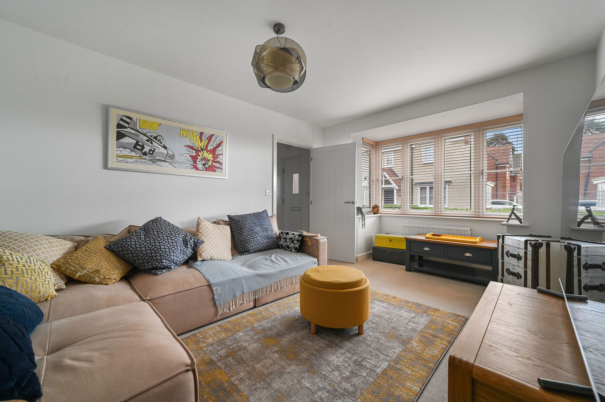 From the moment you arrive, the property’s attractive red-brick façade, gabled porch, and neat hedged frontage immediately convey a sense of warmth and quality. Stepping inside, you are welcomed by a bright entrance hallway leading to a spacious and elegantly styled sitting room. Bathed in natural light from the front bay window, this inviting space features soft neutral décor and a calm, relaxing atmosphere — ideal for unwinding with family or hosting guests.
