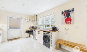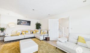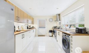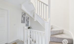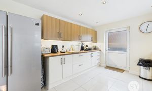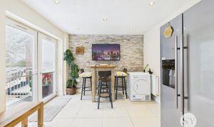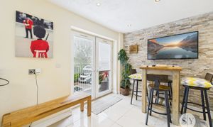 Step into this impressive property through a spacious hallway leading to the contemporary high gloss kitchen diner, perfect for entertaining friends or relaxing with family. The sleek design and ample space make it a focal point for both formal and casual dining. The spacious reception room provides a comfortable area for unwinding or relaxing with guests, with a striking tiled wall as its design focal point.