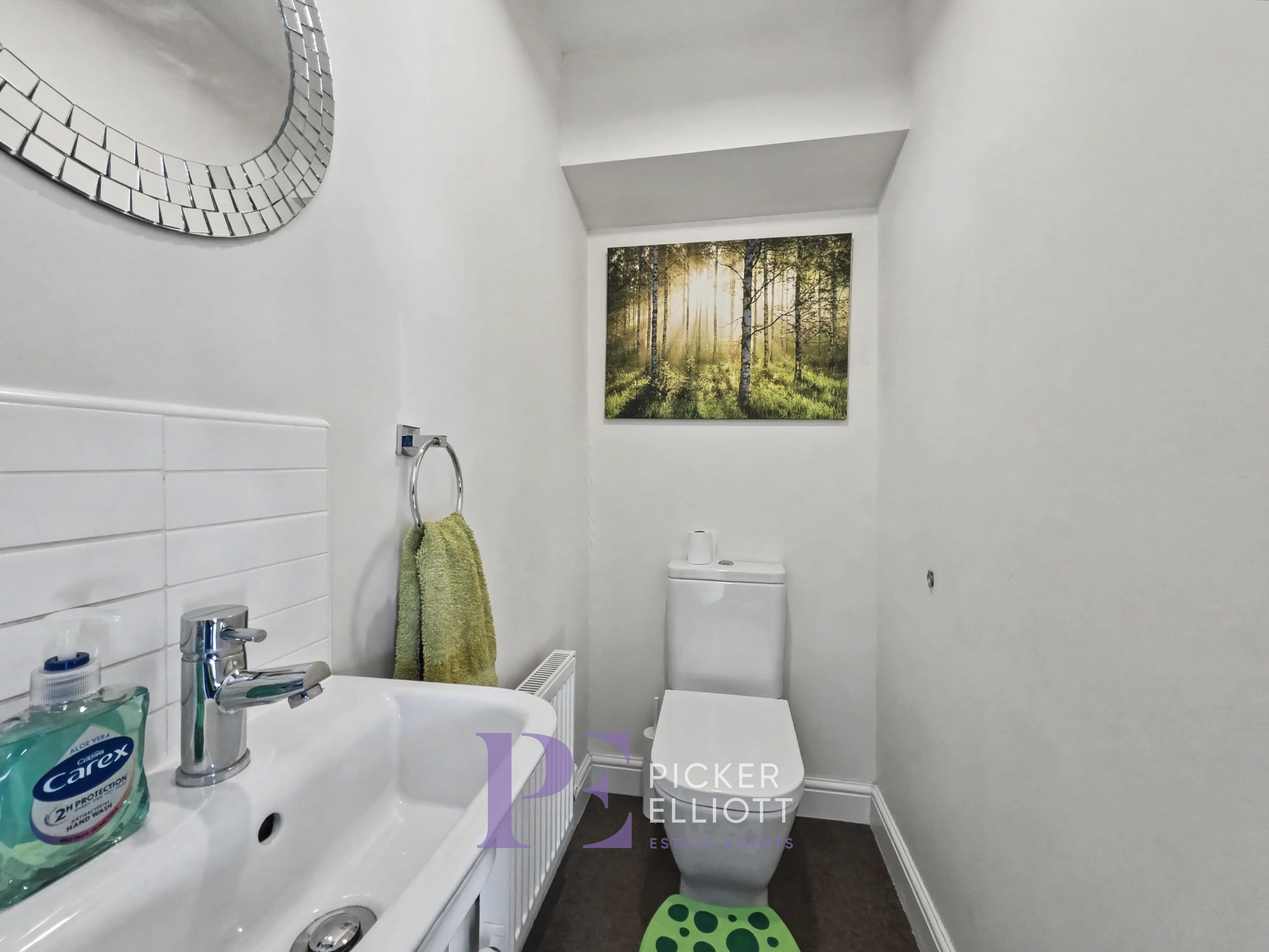 Additional features elevate this property’s appeal and functionality. The dedicated utility area is equipped with space and plumbing for a washing machine, and also houses the gas combination boiler. The private garden is a true highlight, offering a well-maintained lawn, inviting patio with outdoor seating, and a vibrant blue storage shed - perfect for family activities, relaxation, or entertaining friends. With a blend of modern design elements, abundant natural light throughout, and practical spaces such as ample built-in storage and stylish decor, this end-of-terrace home stands out as an exceptional opportunity for discerning buyers seeking both comfort and convenience. Whether you’re looking for versatile family living, entertaining space, or a peaceful retreat, this property is ready to welcome you home.