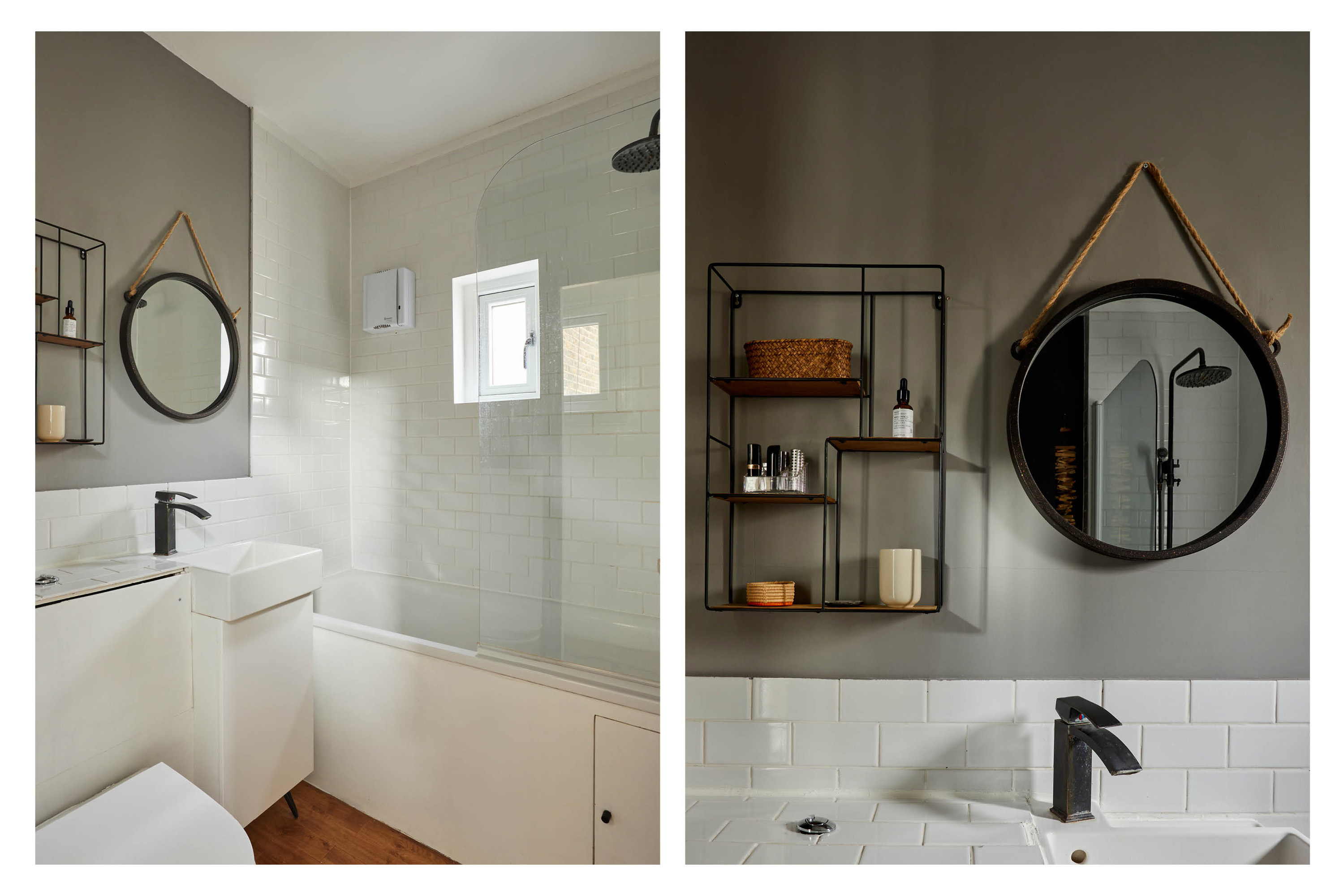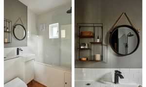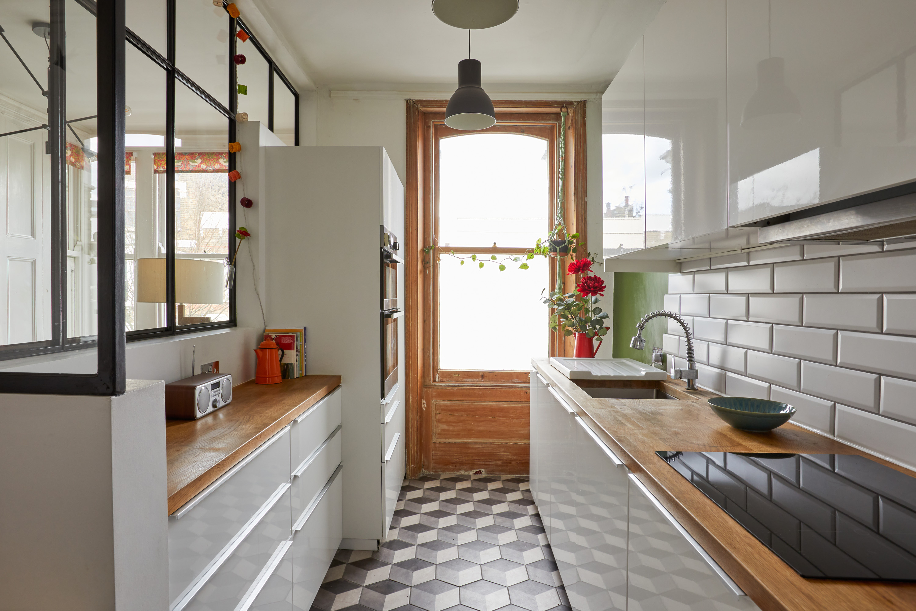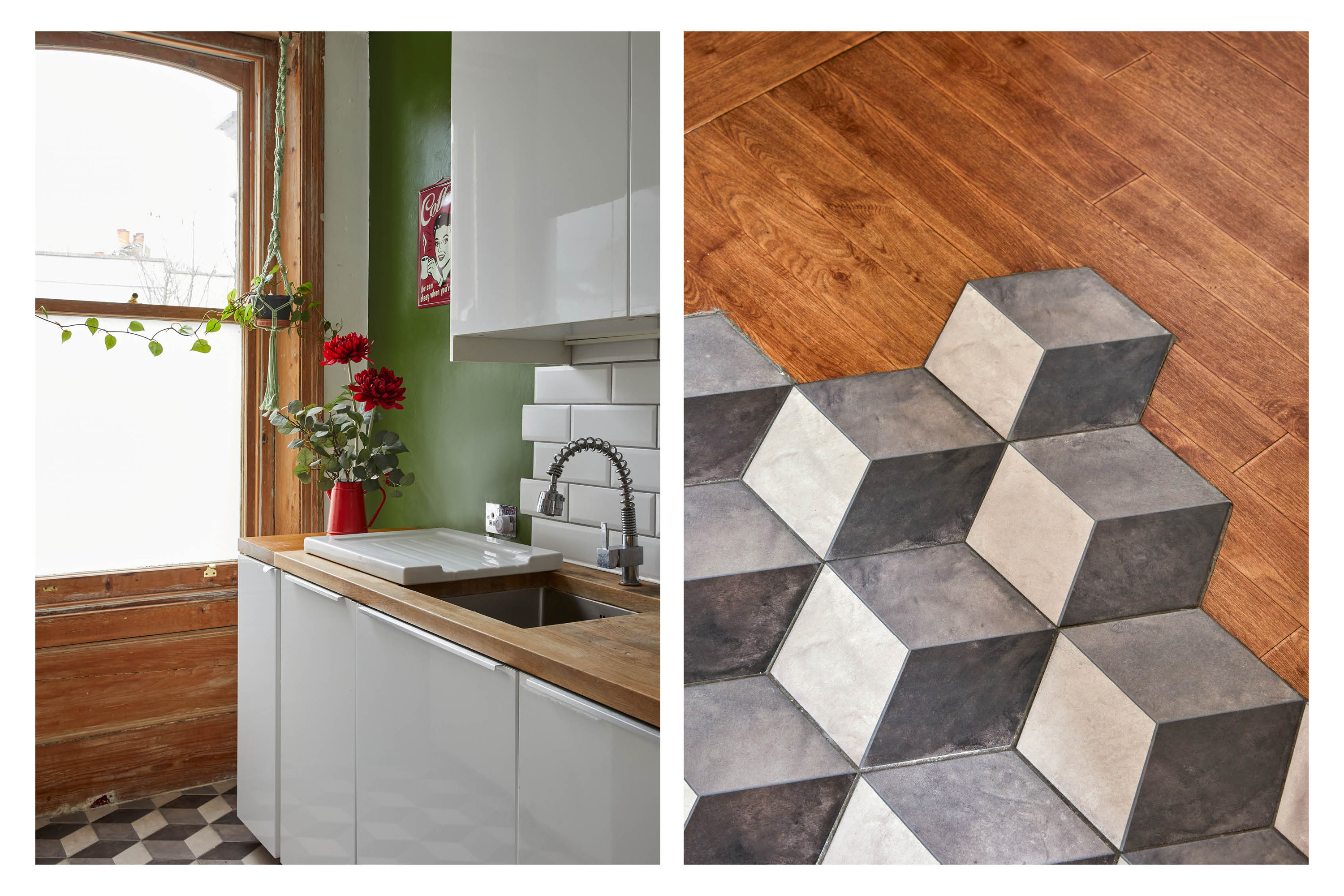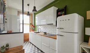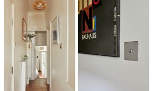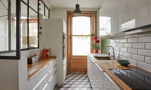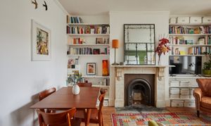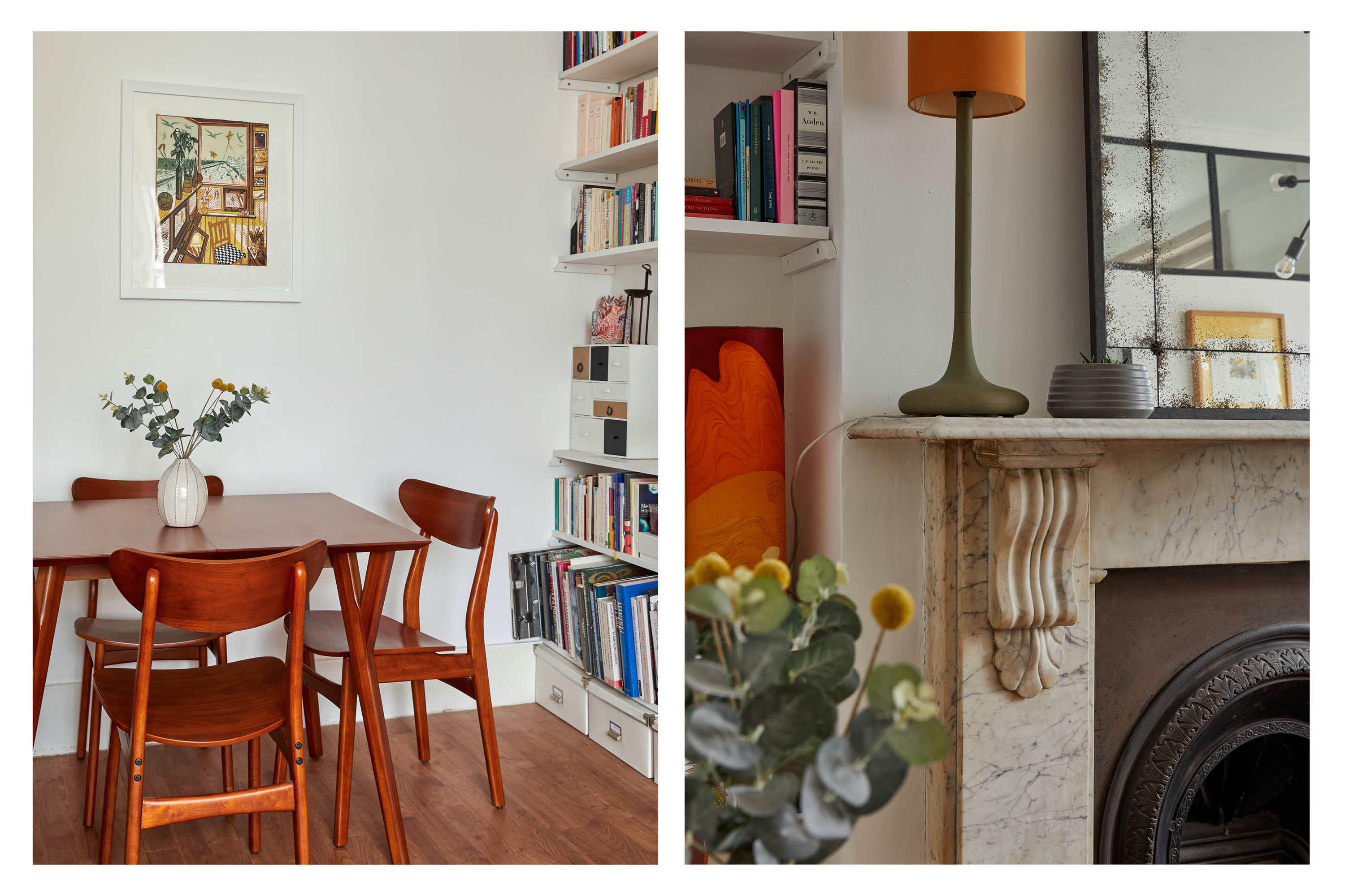 Spanning the first floor of a Victorian house, the gorgeous interiors are filled with period details and thoughtful design touches. The standout element is the Crittal-style glass wall in the living and dining room, which cleverly delineates the two areas, but look closely, and there are many more: the overlap of tile and wood flooring in the kitchen, the various storage solutions, and the marble fireplace surround. It's a home that is rich in character and atmosphere.