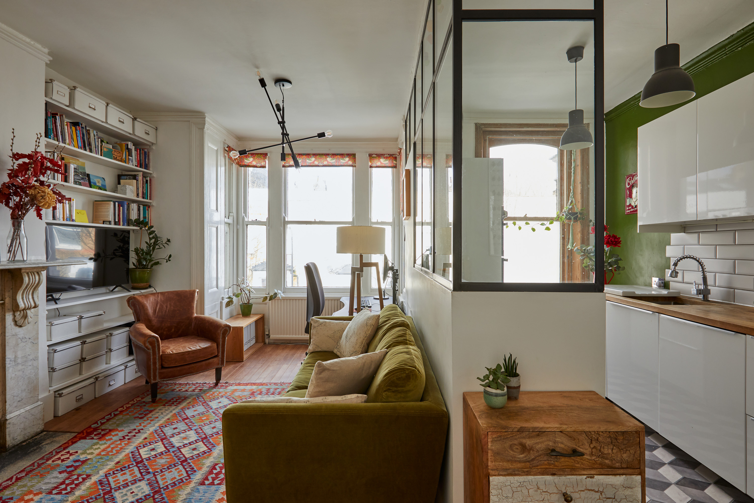 - Love: The Crittal-style glass wall that divides the living and cooking areas is gorgeous and practical
