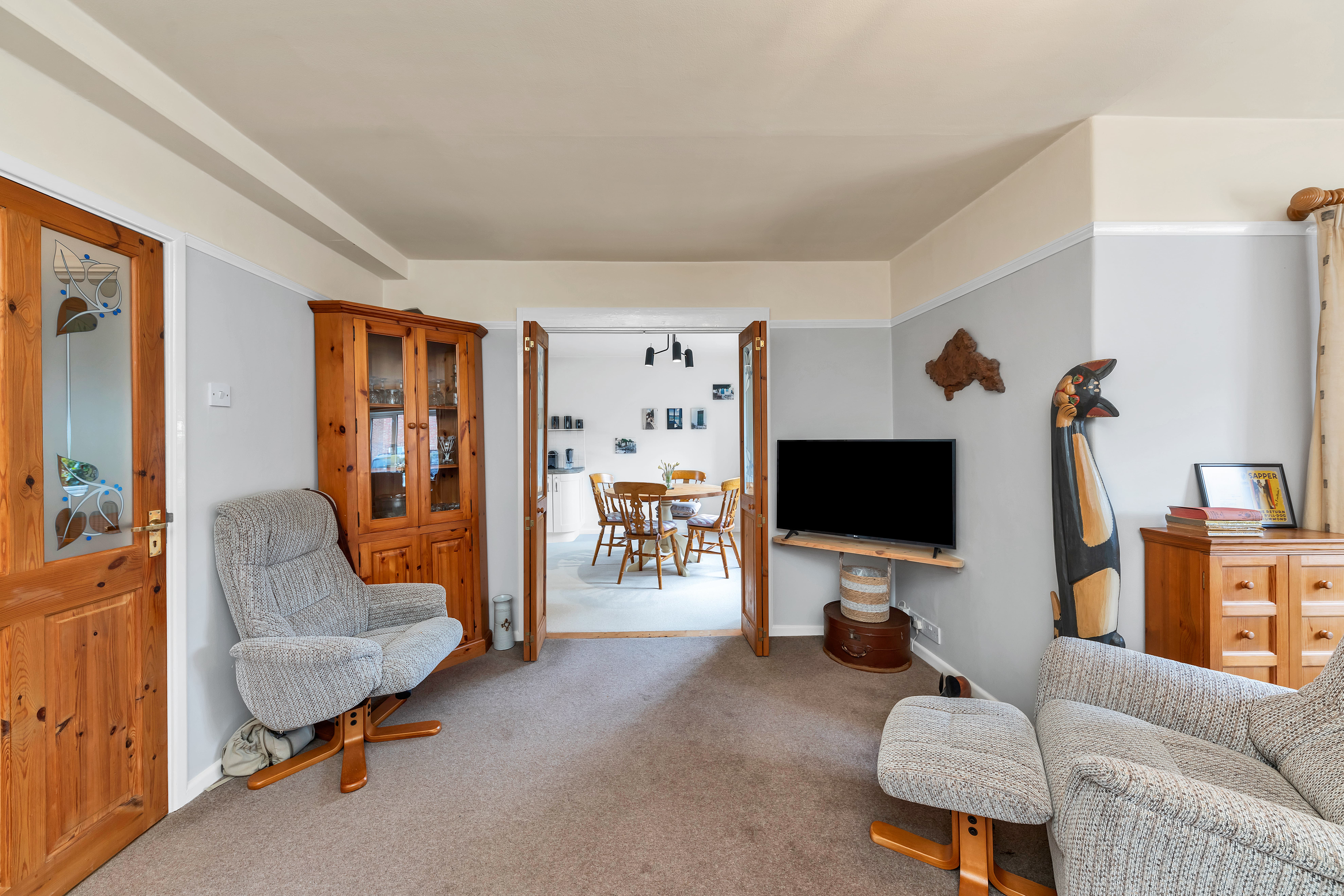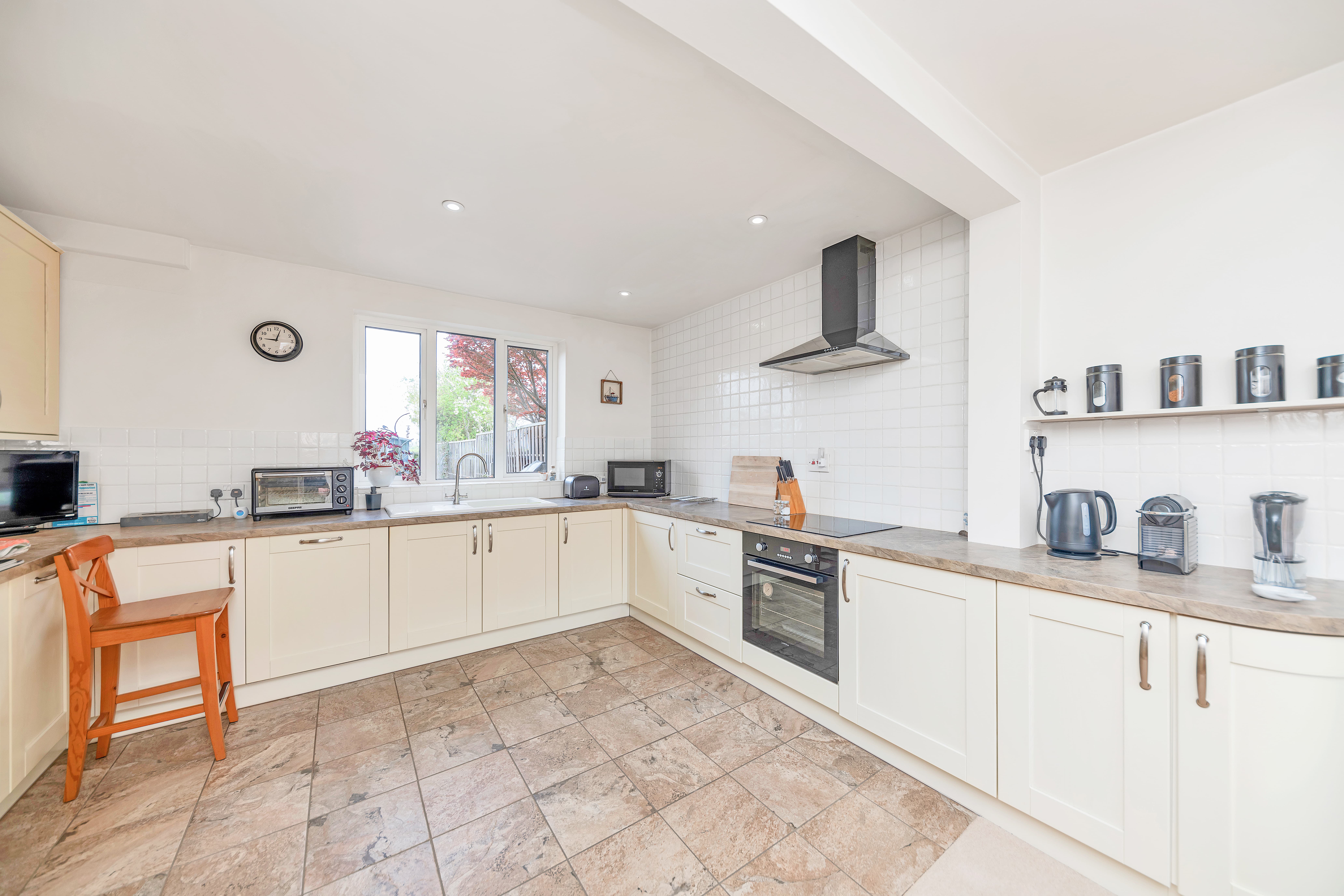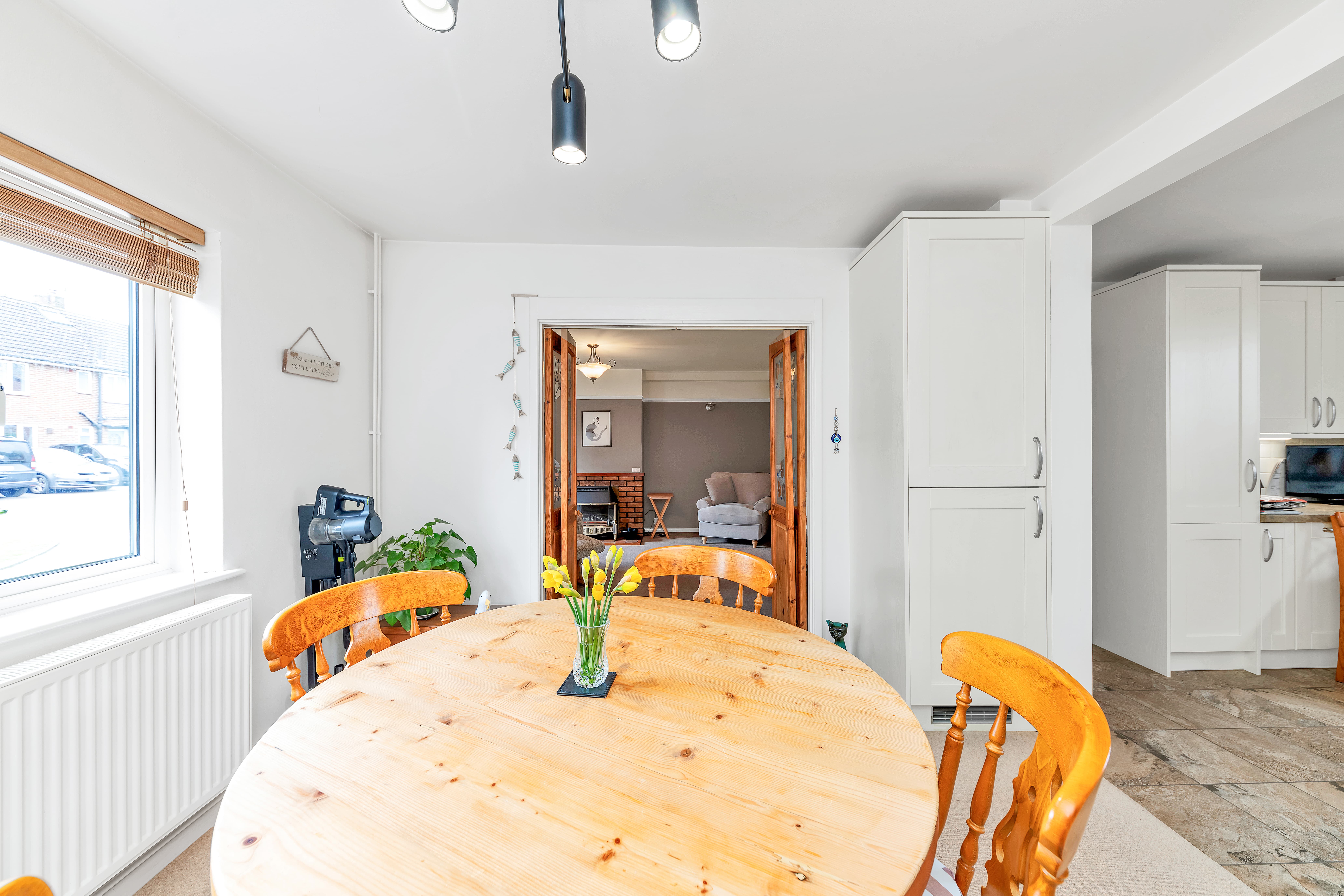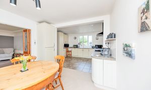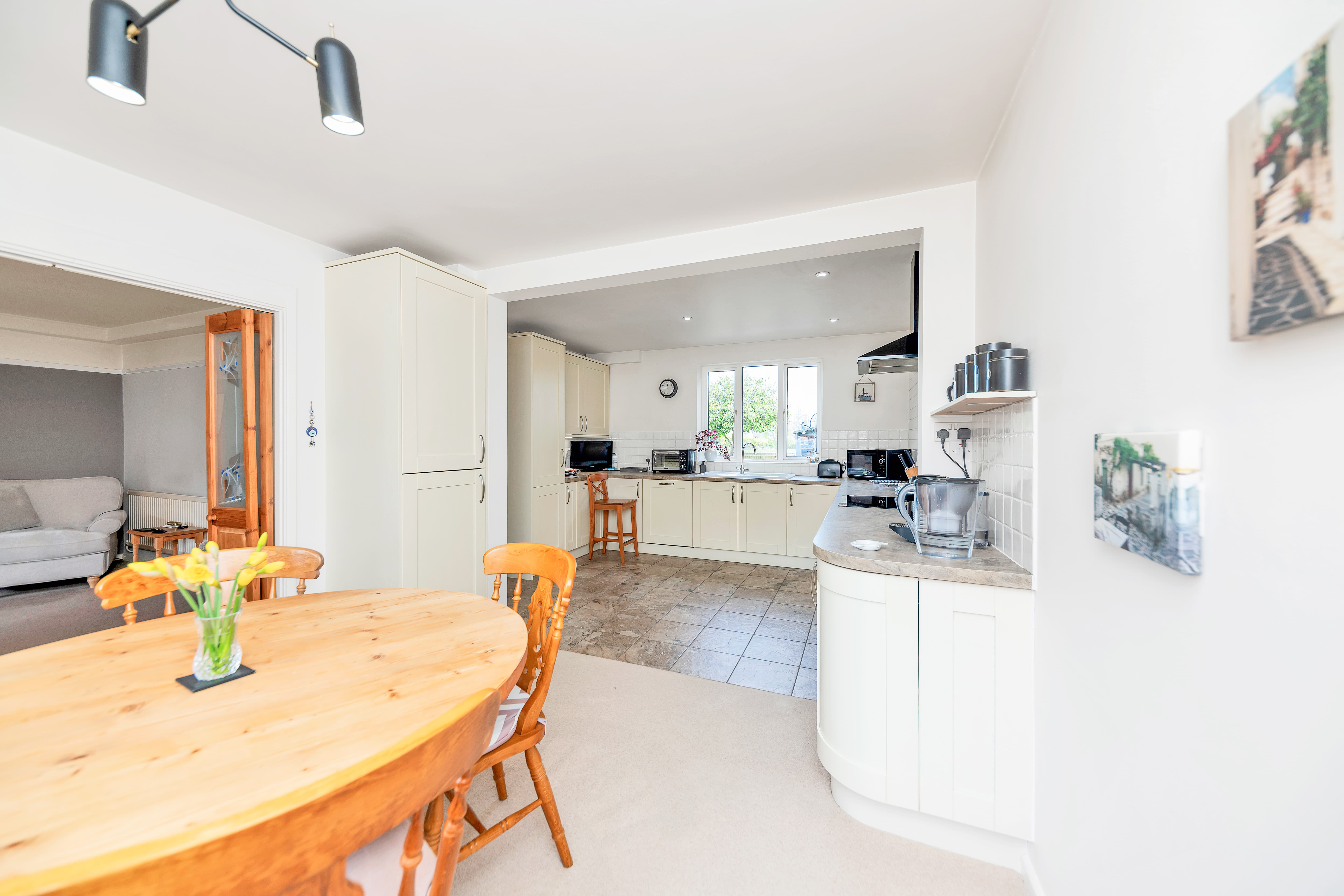 This extended property enjoys good kerb appeal with an attractive frontage of coloured brick, front lawn gardens with mature hedgerows, borders of decorative slate, room for potted plants, side access to the rear, and a large gravel driveway with off-road parking. Upon stepping inside, the entrance hallway is wide, bright and welcoming, with tiled flooring, pendant lighting, room for furniture, integrated storage, stairs to the first floor, and access through to the downstairs living space, including a cloakroom WC.