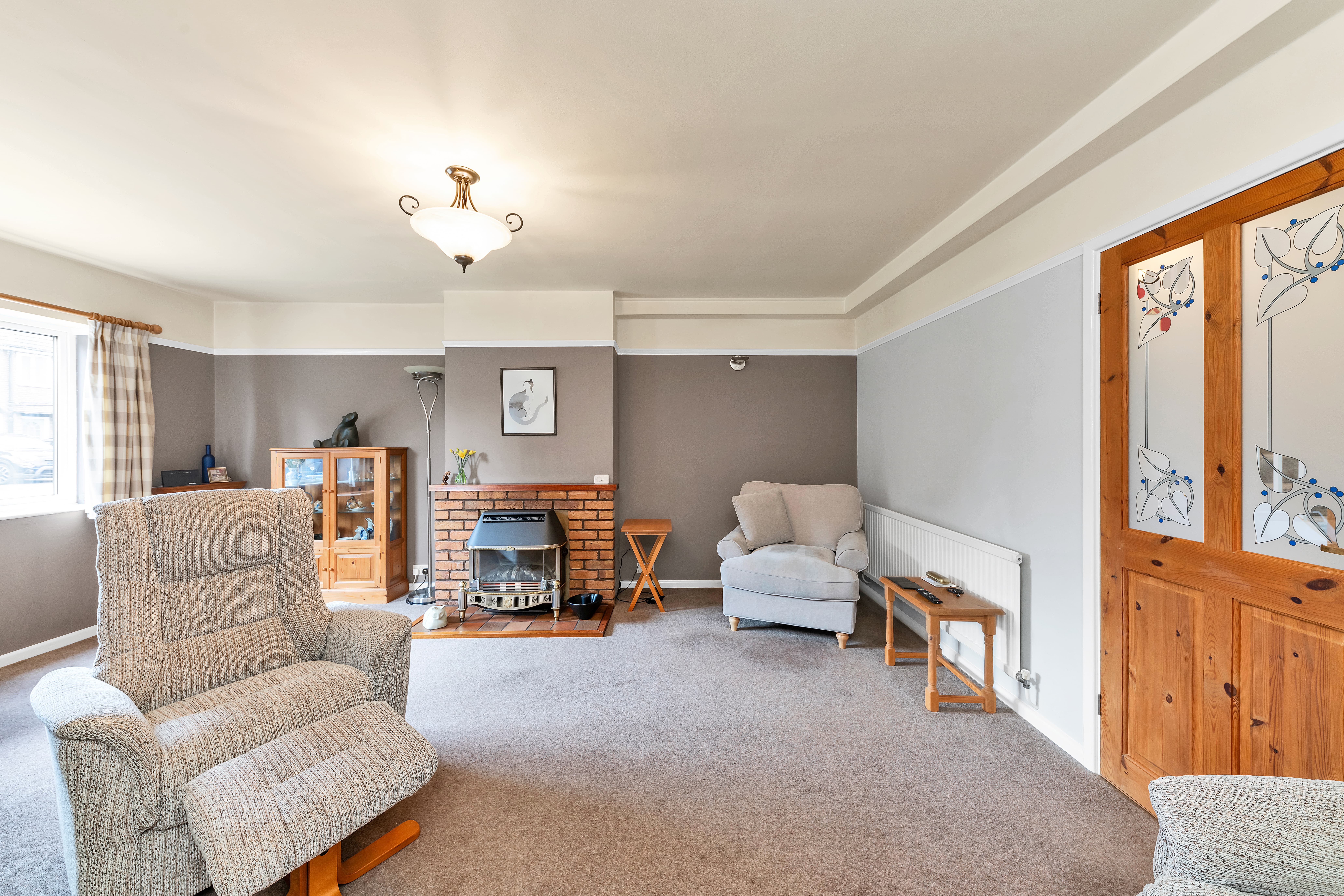The lounge is a large ‘L’-shaped space, enjoying windows to a dual aspect, a feature fireplace, carpets, pendant lighting, stylish decor, and ample space for a variety of lounge and storage furniture.
