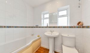 Upstairs to the first floor, this lovely home continues to offer beautiful accommodation, with 3 well-proportioned bedrooms each with fitted wardrobes, integrated storage, and a family bathroom comprising a bath with an overhead shower, a WC and a hand wash basin. The primary bedroom is particularly generous and enjoys its own en-suite, with a shower and hand wash basin.