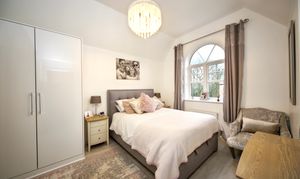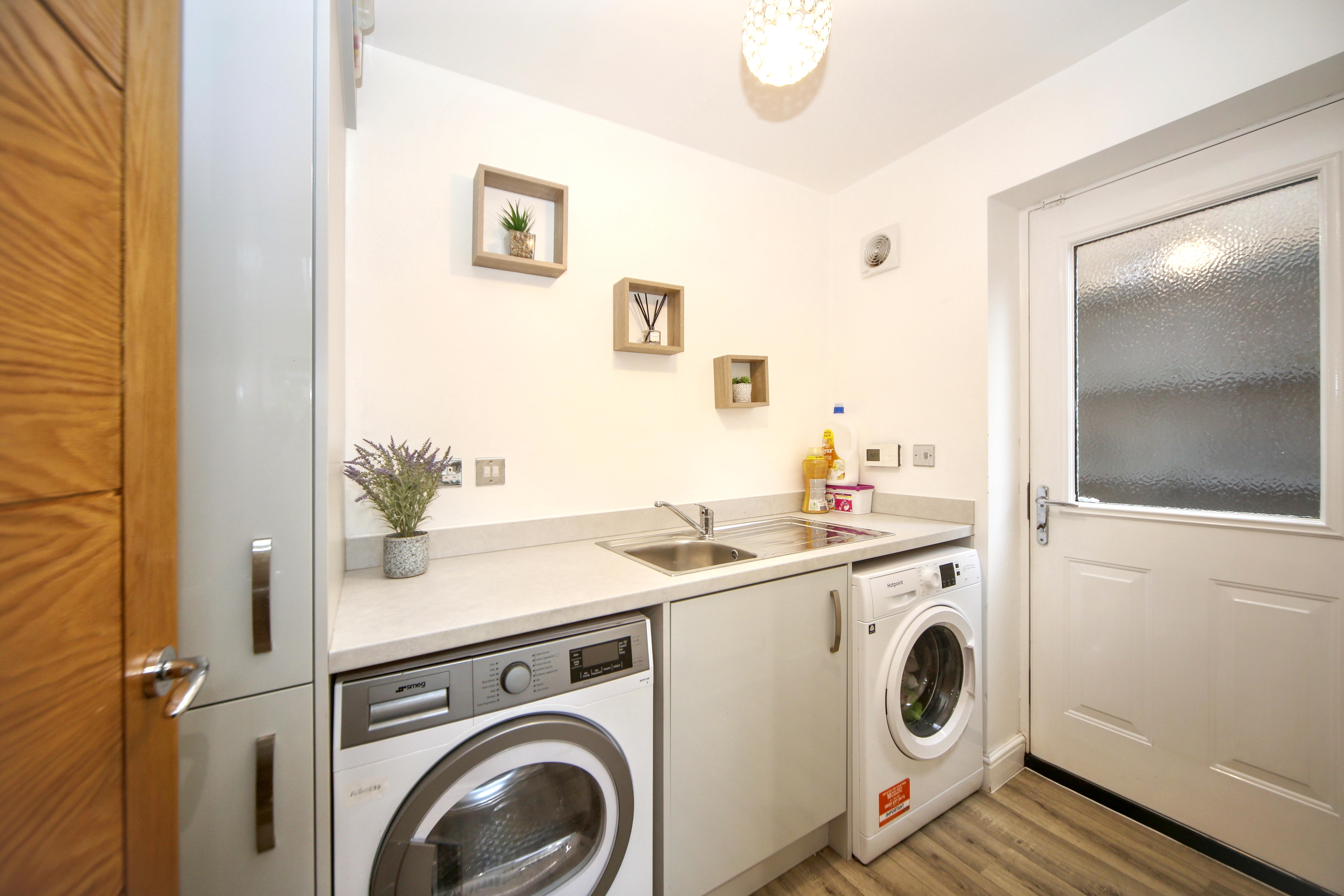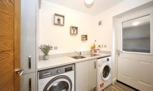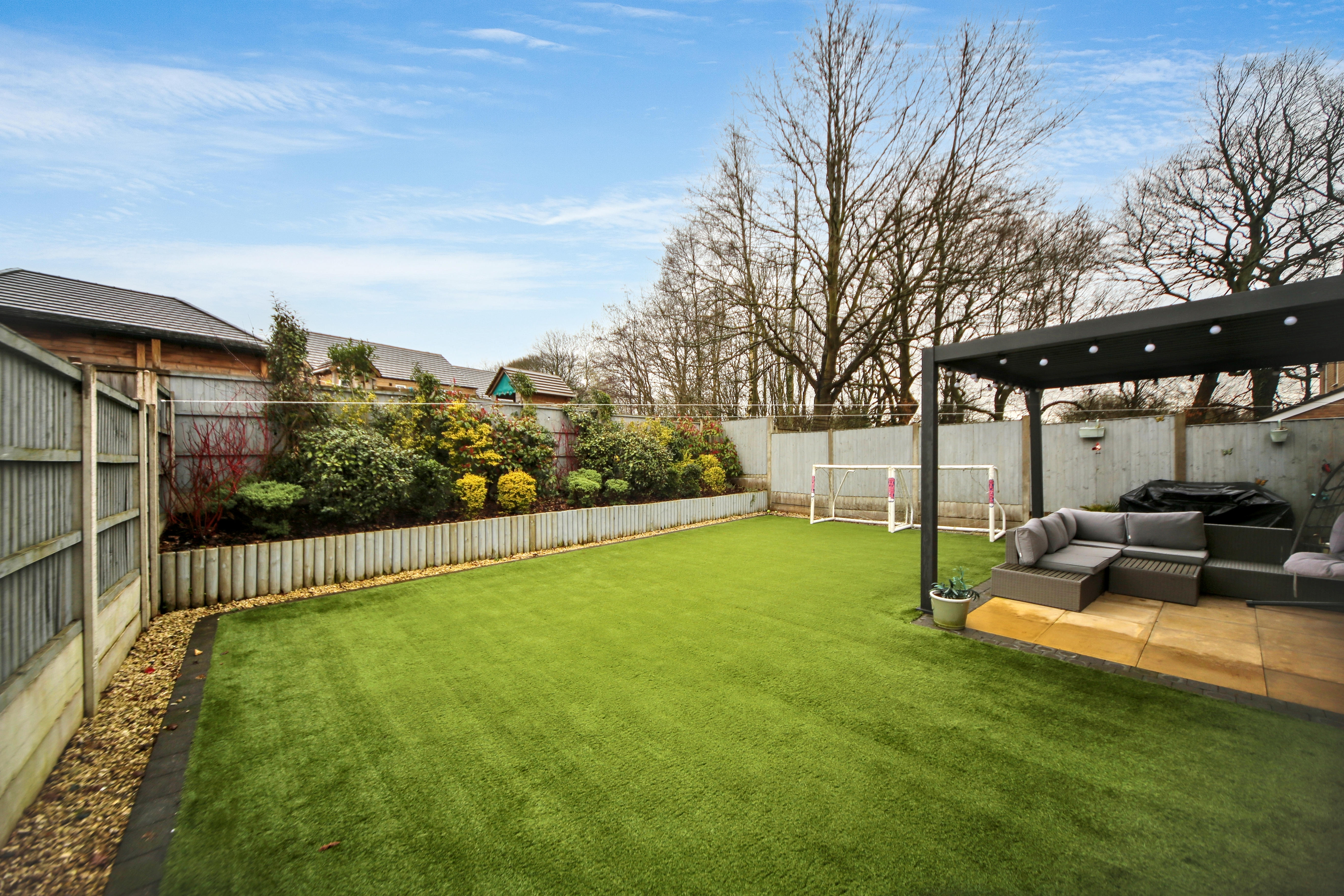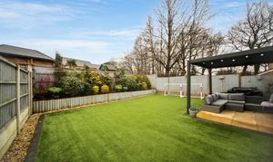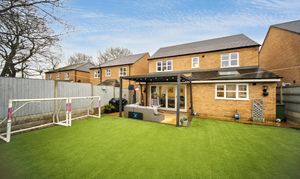 Externally, the property continues to impress with a landscaped rear garden—an ideal setting for family time and outdoor entertaining. To the front, a driveway provides off-road parking for two vehicles and includes an EV charging point, leading to a garage currently utilised as a gym.