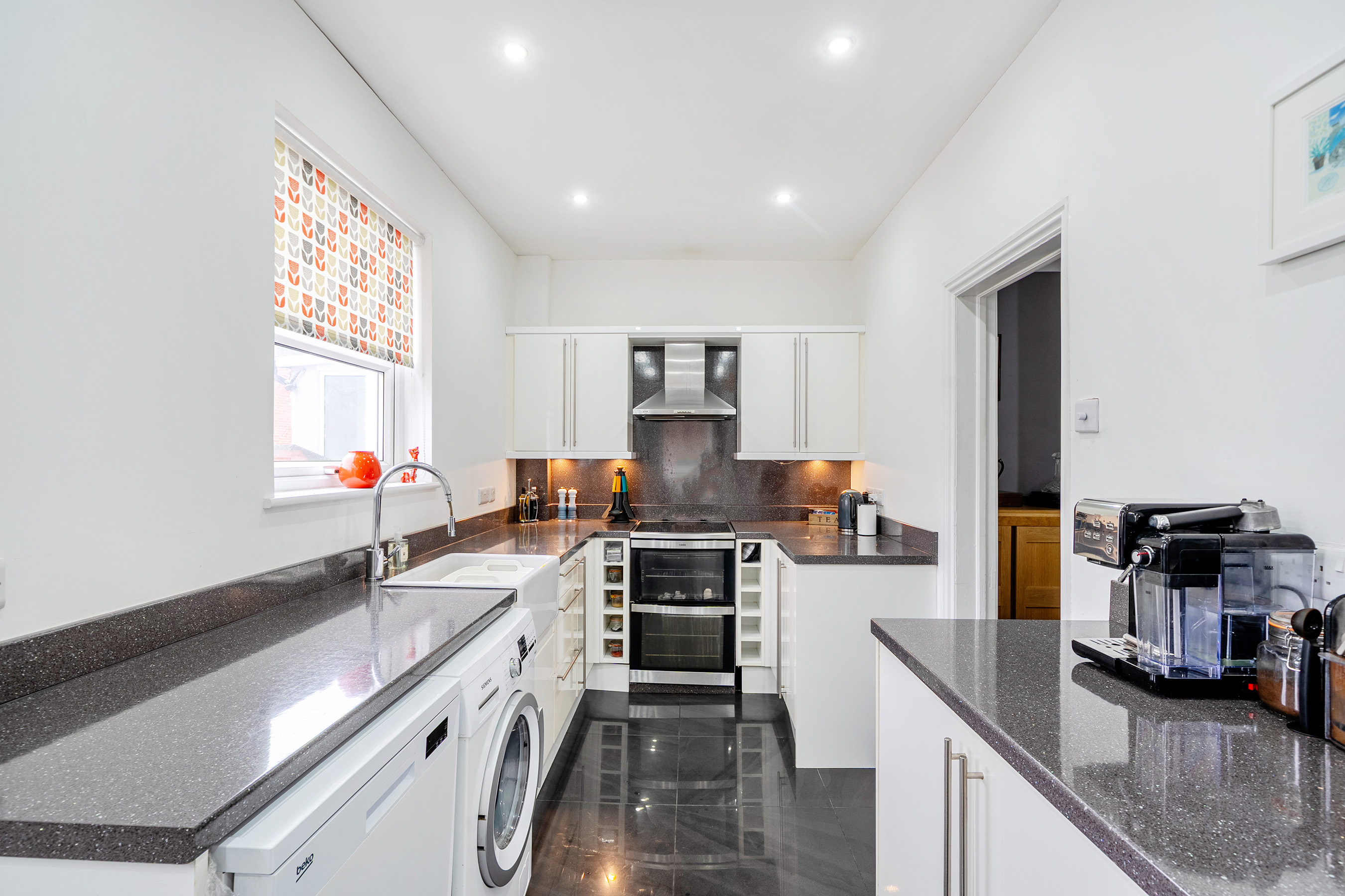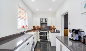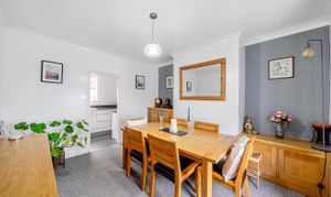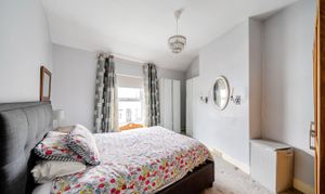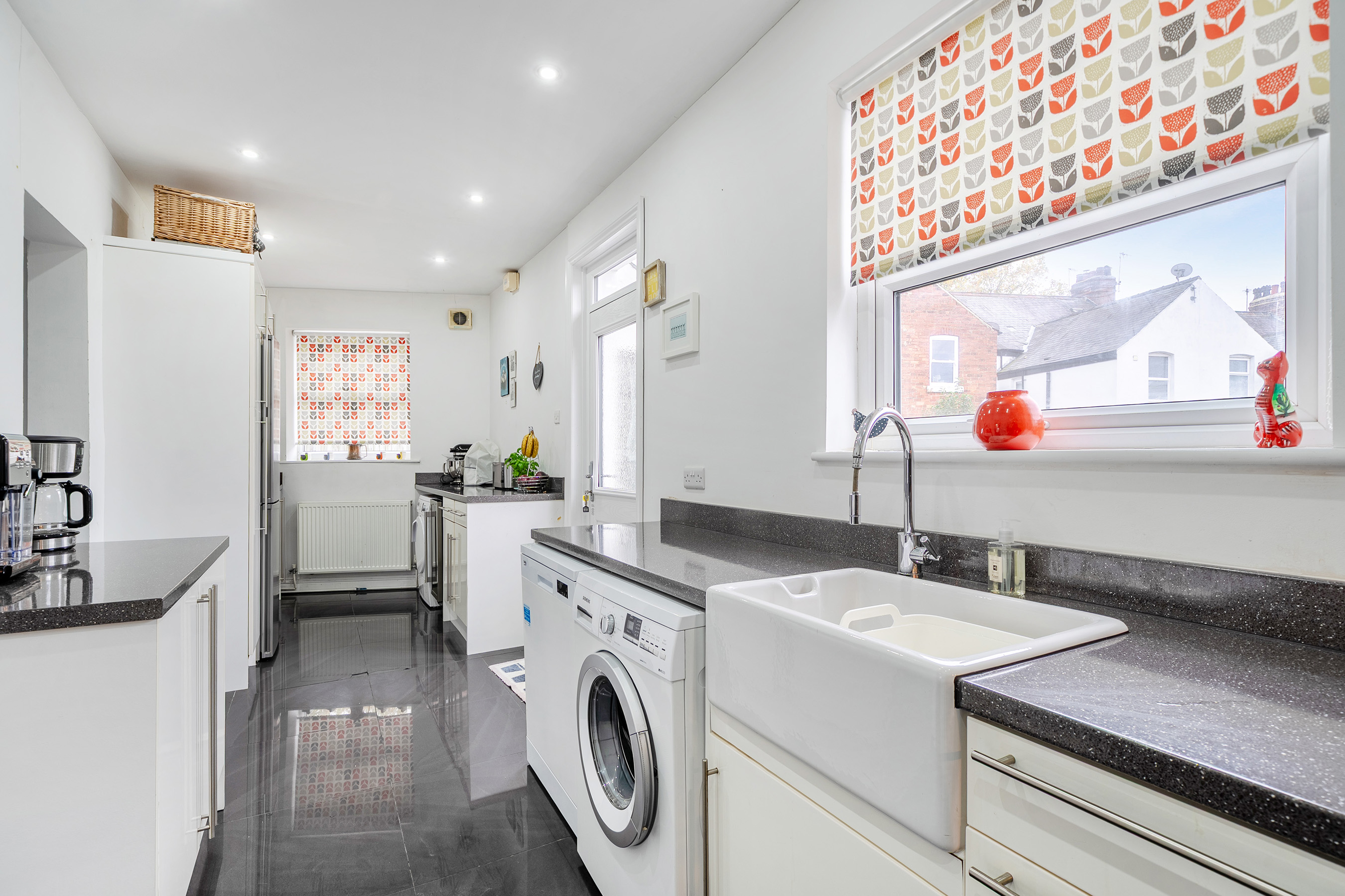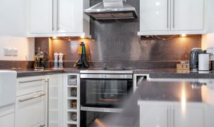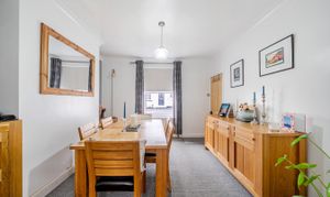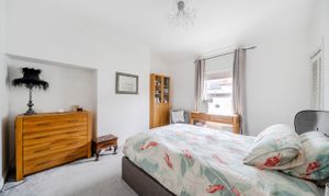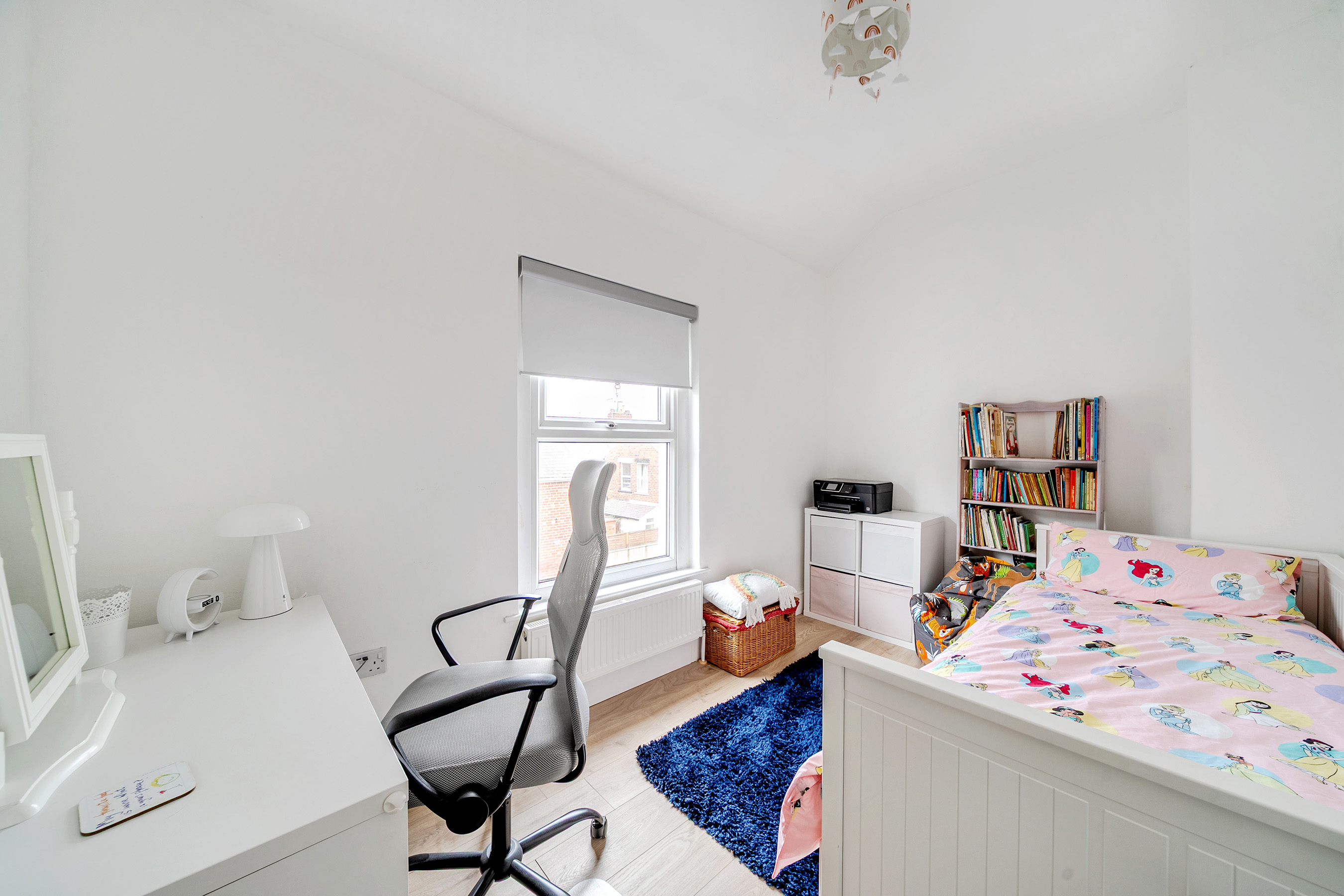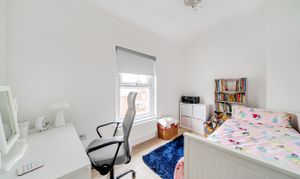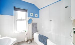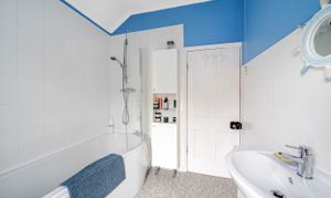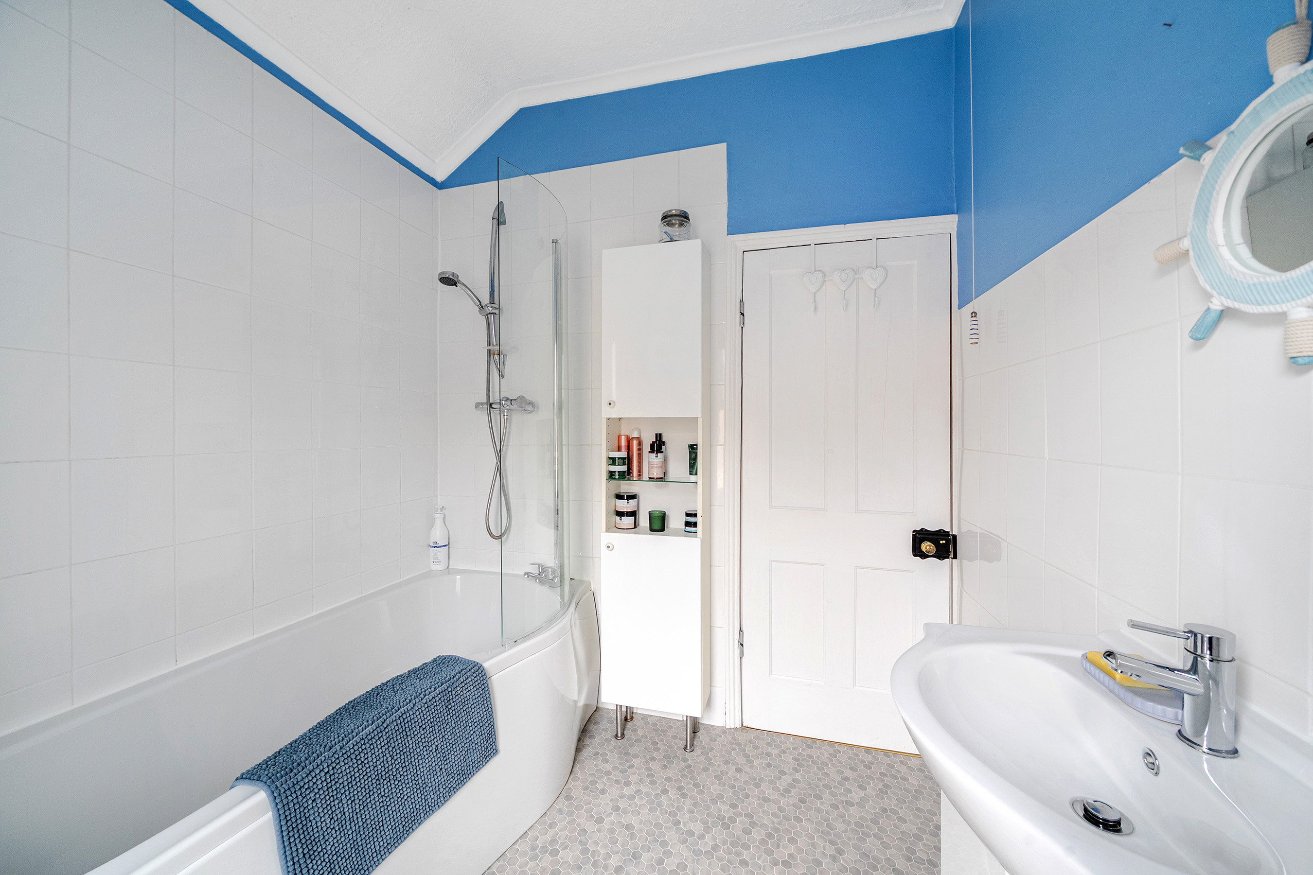 Upstairs, the first floor offers two large, airy double bedrooms, and a third slightly smaller one, which could be repurposed as an office. These bedrooms are all served by the practically positioned family bathroom, complete with over-bath shower.