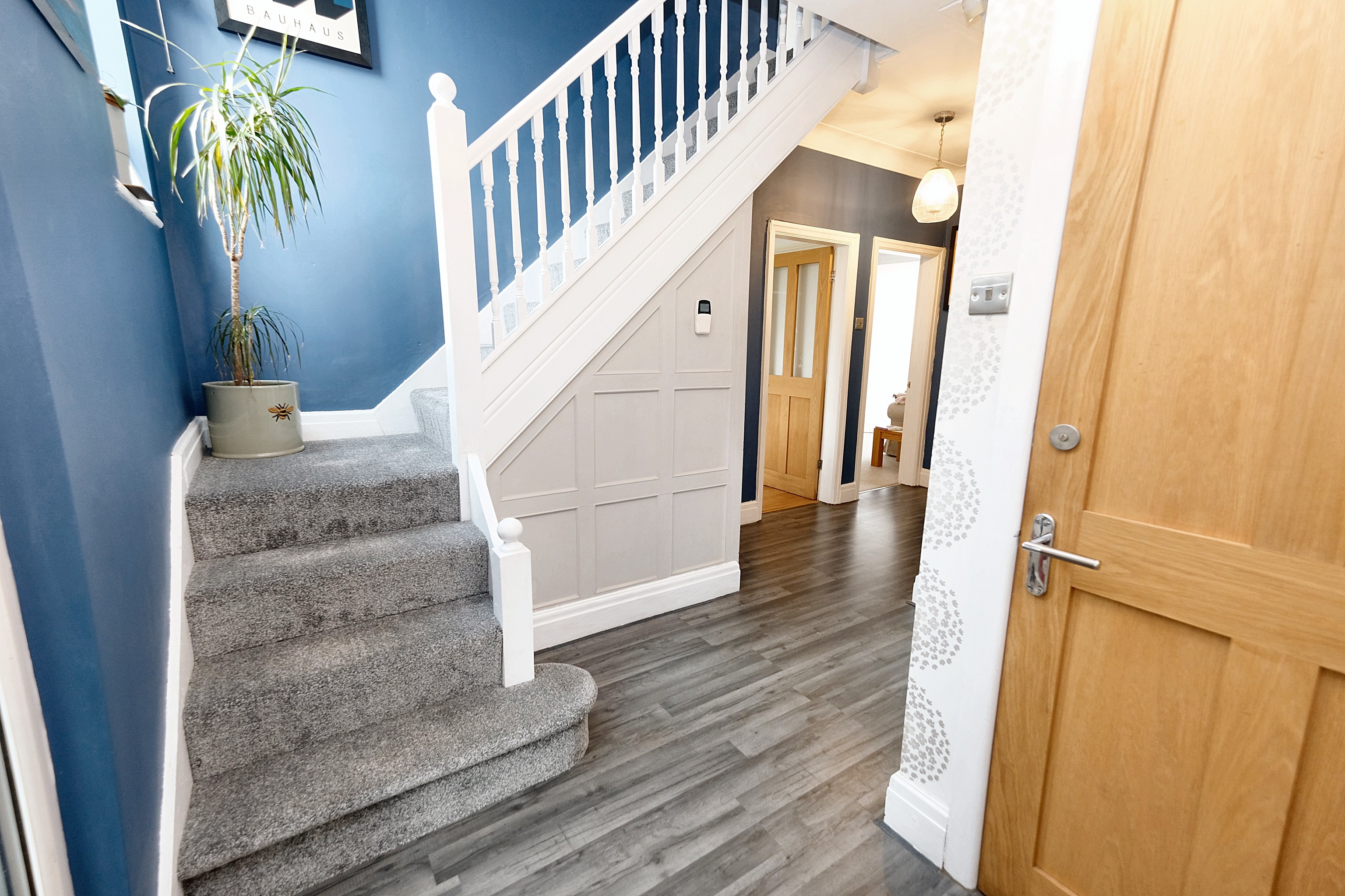 This stunning four bedroom semi-detached house is the epitome of perfect family living, nestled on an intimate, tree-lined cul de sac in the highly sought-after Ellesmere Park neighbourhood, coming to the market chain free! As you step inside, you will be greeted by a bay-fronted family lounge, featuring a charming log burner that not only warms the room but also serves as an eye-catching centrepiece.
