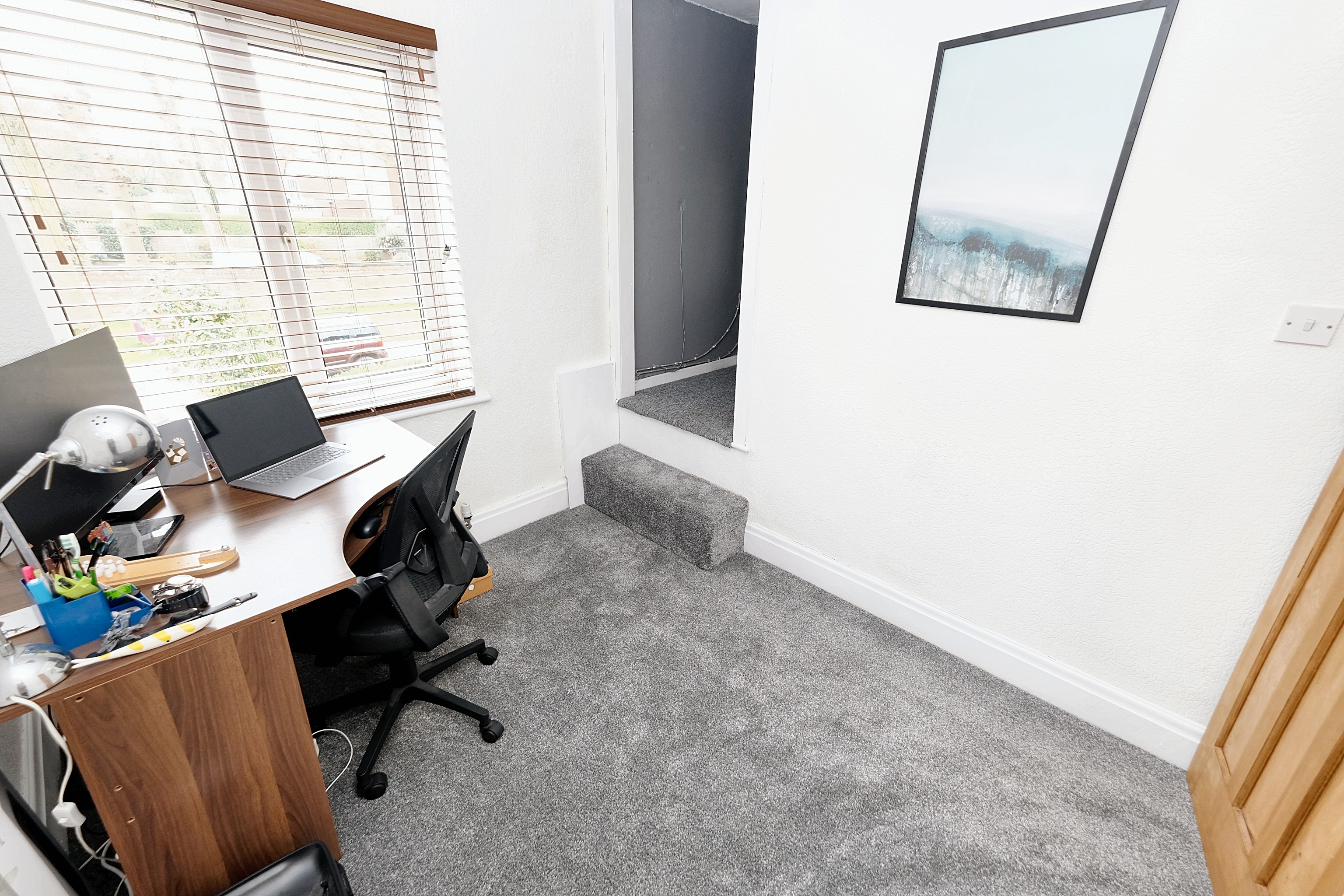 Featuring a multi fuel burner. Complete with a ceiling light point, double glazed bay window and wall mounted radiator. Fitted with laminate flooring.