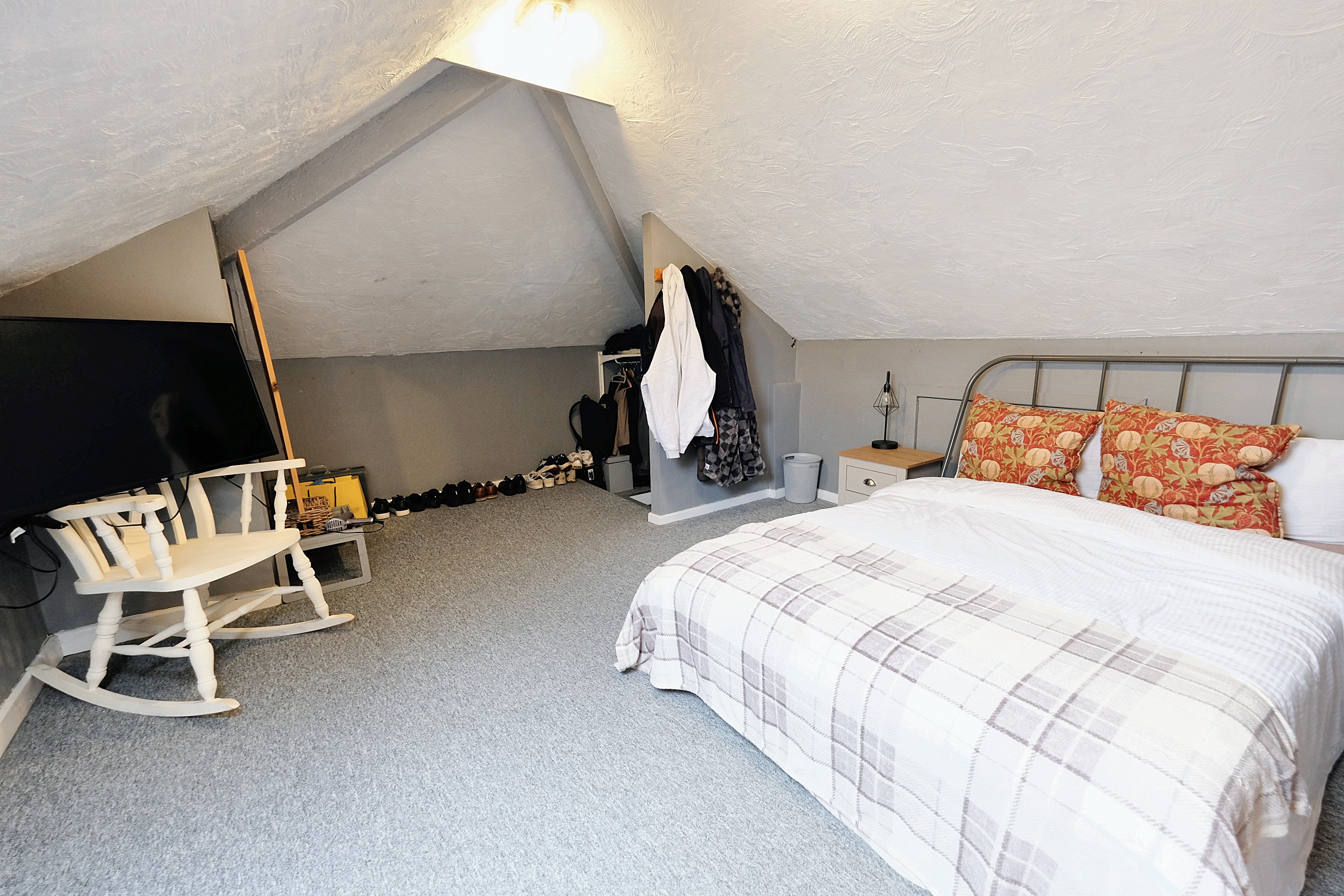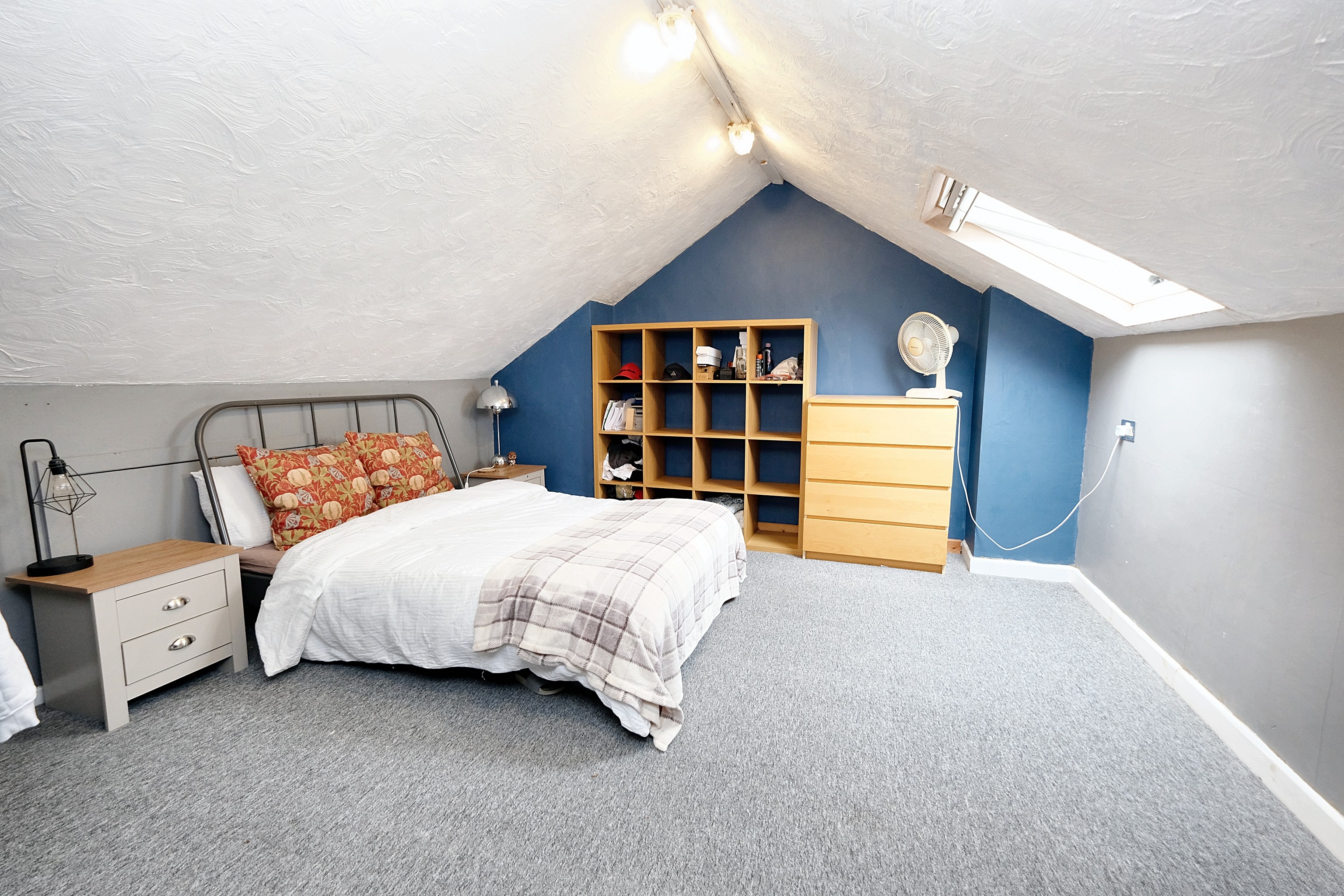 Complete with a ceiling light point, sky light and wall mounted radiator. Fitted with carpet flooring.