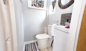 Featuring a two piece suite including hand wash basin and W.C. Complete with a ceiling light point, double glazed window and lino flooring.
