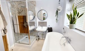 Featuring a four piece suite including a bath, shower, hand wash basin and W.C. Complete with a ceiling light point, double glazed window and wall mounted radiator. Fitted with lino flooring.