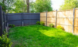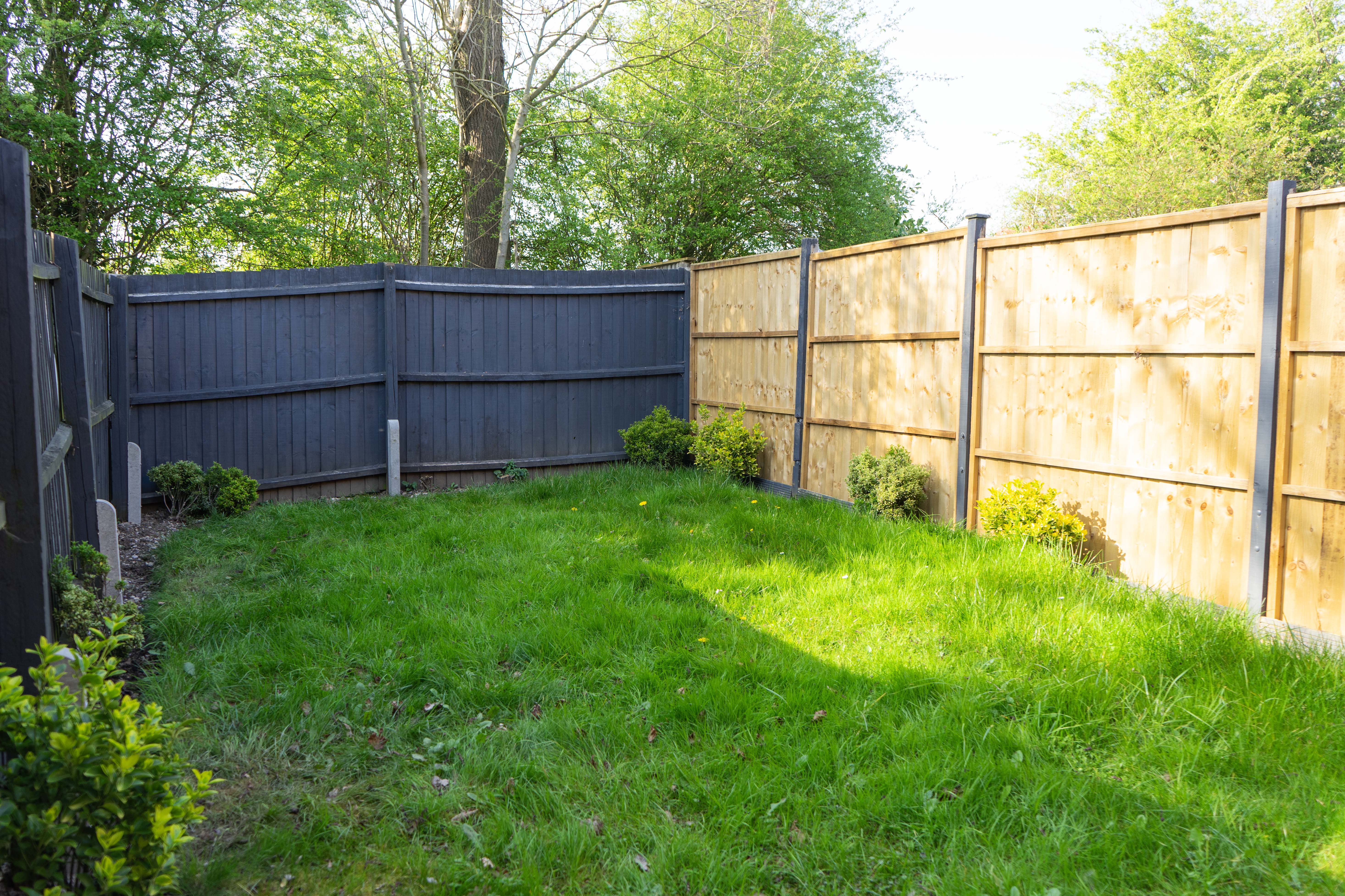 With gate to side access, paved patio area, lawn, flowerbeds and shrubs, fencing to perimeter.