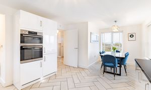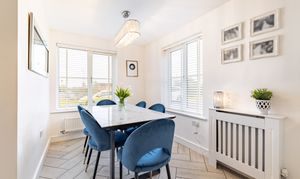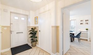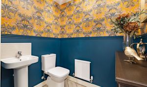 The ground floor is arranged to provide distinct yet connected living spaces. A welcoming entrance hall leads through to a spacious reception room positioned to the rear, enjoying a calm outlook and direct access to the garden via double doors. The kitchen/dining room sits to the opposite side of the house, offering ample space for both cooking and dining, with a useful adjoining utility room providing additional storage, appliance space and access outside. A ground floor cloakroom completes the layout.