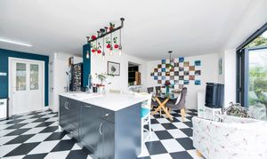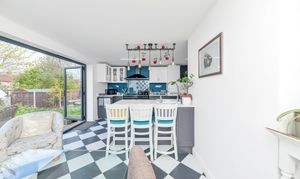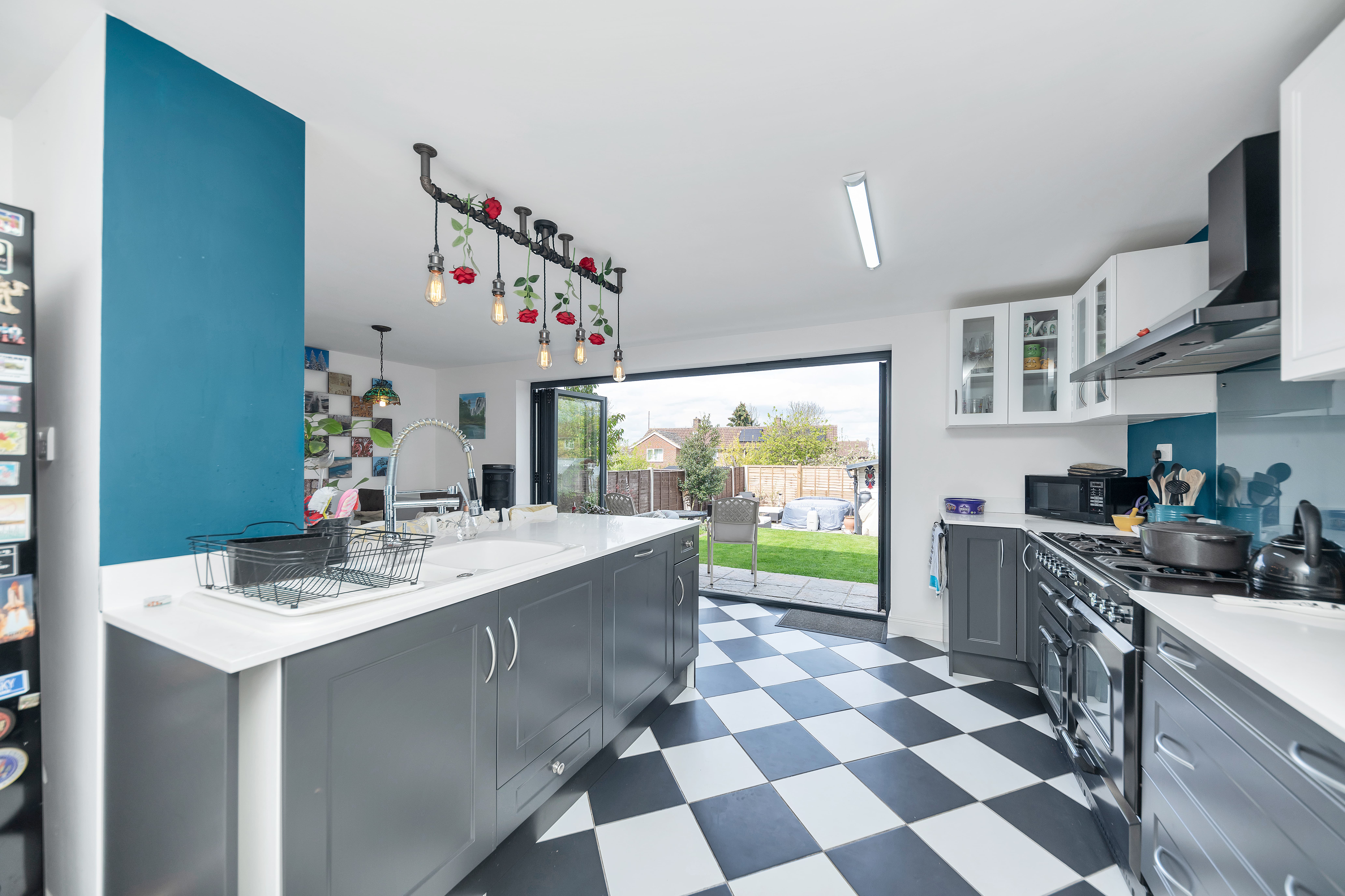 This extended and updated property enjoys good kerb appeal with an exposed brick and cream render frontage, front gardens with space for potted plants, and a large, elevated driveway with off-road parking. Upon stepping inside, the entrance hallway is wide, welcoming and nicely decorated, alluding to the high standard seen throughout. It enjoys tiled flooring, pendant lighting, room for furniture, and access through to the downstairs living space, including a cloakroom WC.