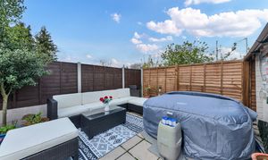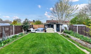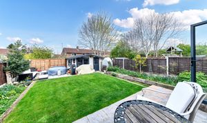 Outside, to the rear, the garden is a very nice size, fully enclosed by fencing and offering a lovely space to sit and relax in the warmer months. It is laid mainly to lawn with paved patio areas, providing ample room for garden furniture, a hot tub, enjoying meals together and entertaining guests. There are well-maintained borders and beds of plants, trees and shrubs, lots of space for potted plants, access to a large summerhouse, and scope for new owners to add their own touches.