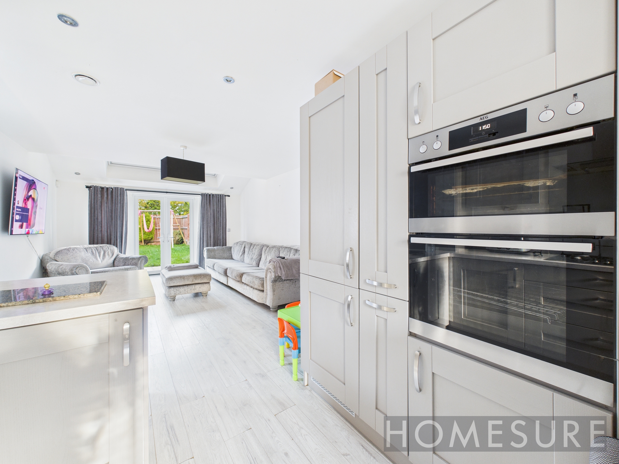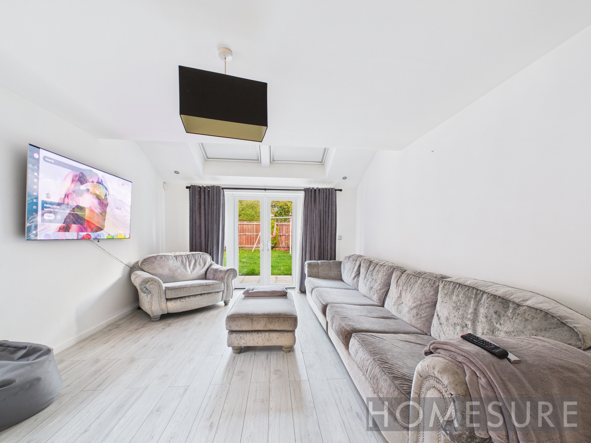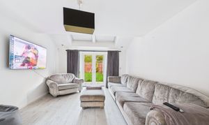 Welcome to this stunning three-bedroom, two-bathroom semi detached house that combines modern design with practical family living across three spacious stories. Step inside to a bright entryway featuring a sleek modern front door and radiator heating, immediately setting a warm and welcoming tone. The open plan living area is the heart of the home, with laminate flooring, abundant natural light from skylights, and French doors that open directly onto a well-sized garden. Whether you are entertaining friends or enjoying a quiet evening, the inviting living space and kitchen offer versatility and comfort for every occasion.
