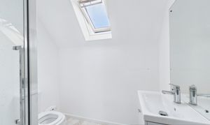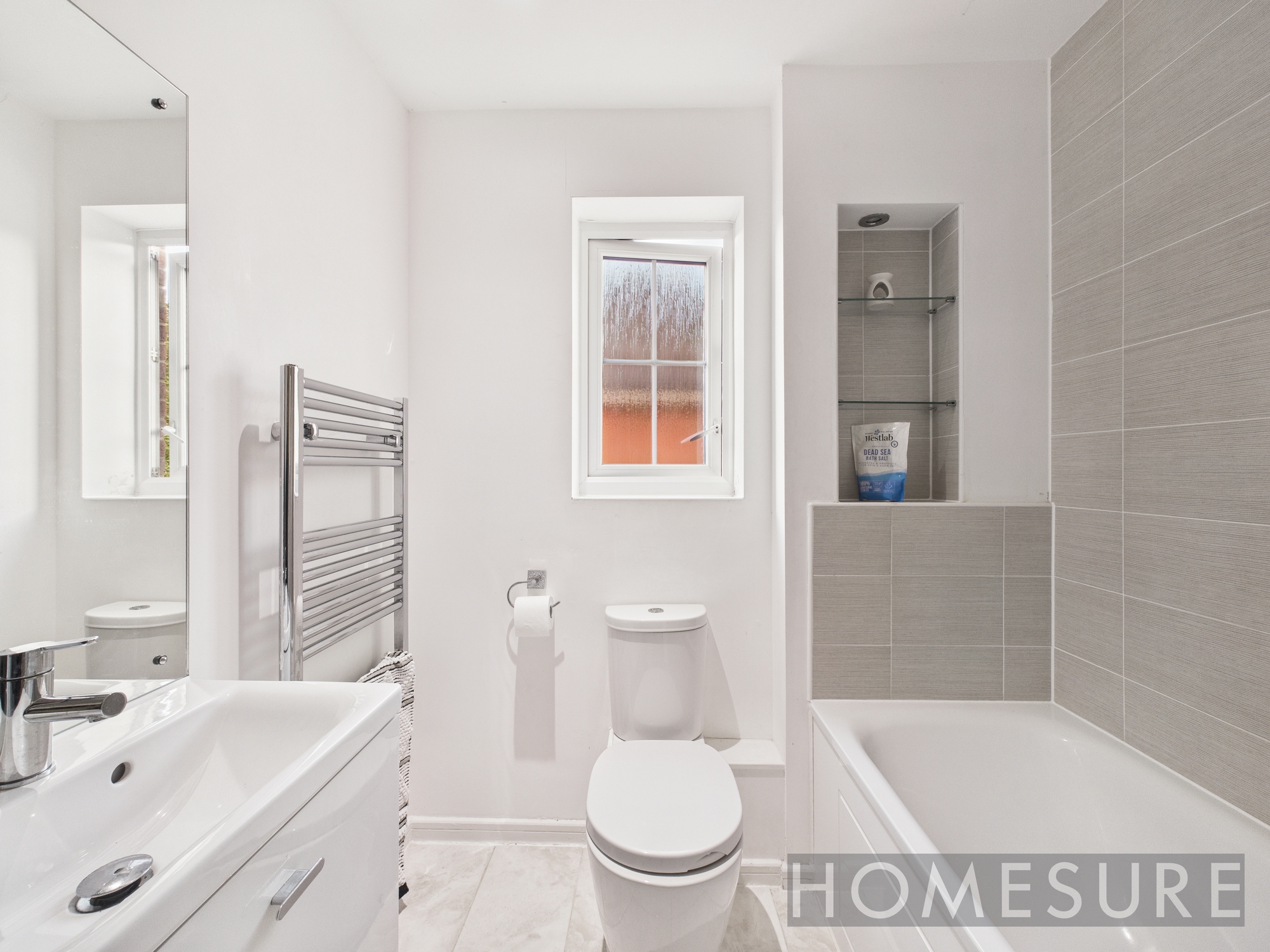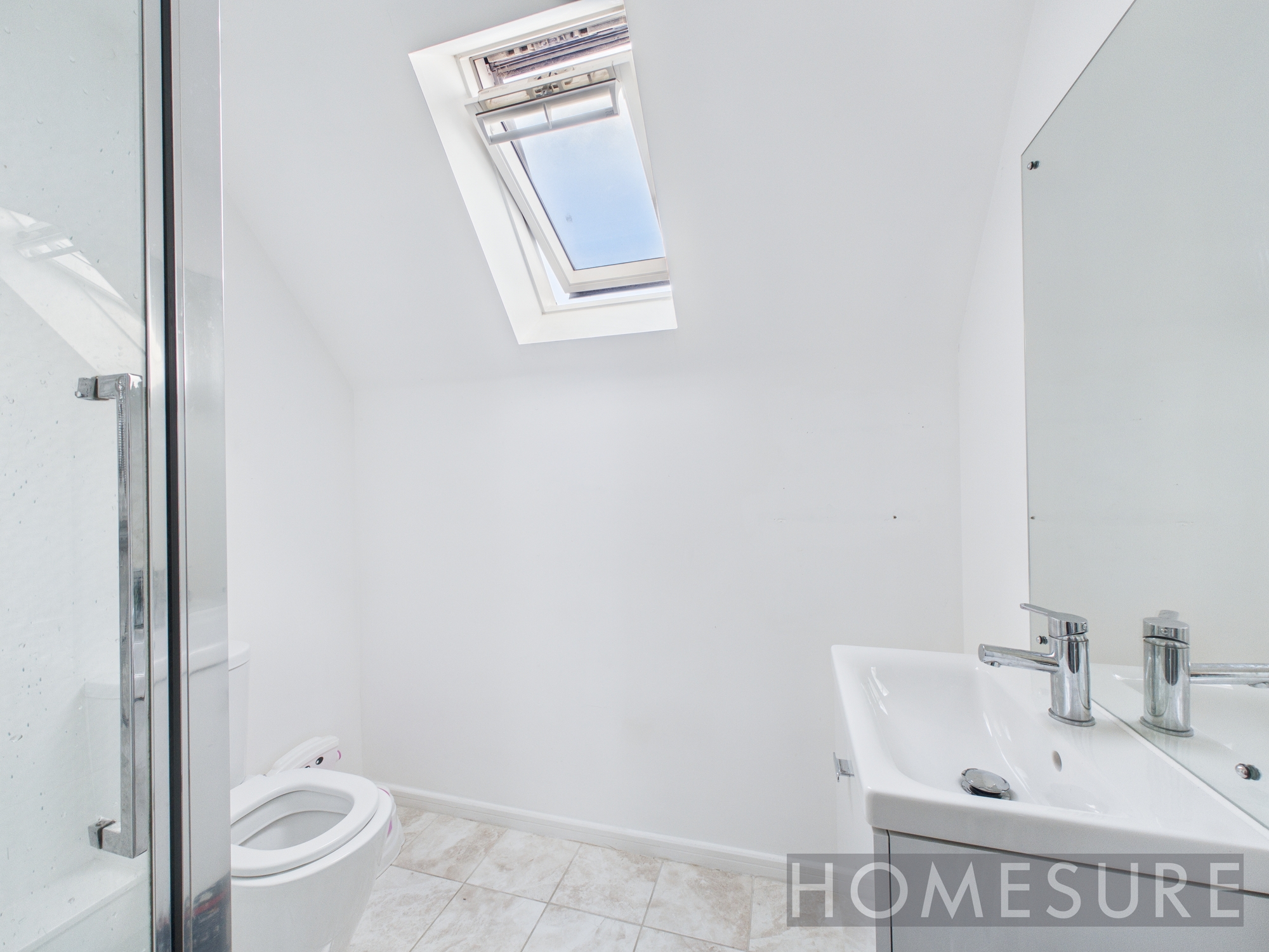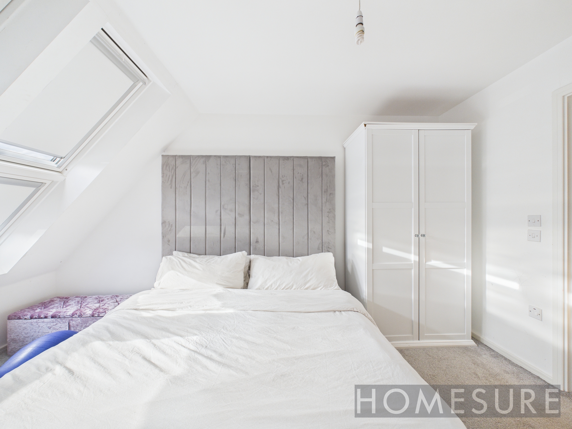 Upstairs, each bedroom is thoughtfully designed with ample storage and modern decor, including a loft-style room with Velux windows for a bright, airy retreat. The bathrooms are finished with sleek modern fixtures - including walk-in showers, towel radiators, and skylights providing both luxury and functionality. Additional touches like the plush-carpeted staircase, wooden handrails, and an abundance of natural light make this property perfect for growing families or professionals needing work-from-home space. Outside, enjoy a spacious garden with a paved patio, enclosed fencing. While off-road parking and a contemporary brick exterior add convenience and kerb appeal. This home truly ticks all the boxes for modern family living.
