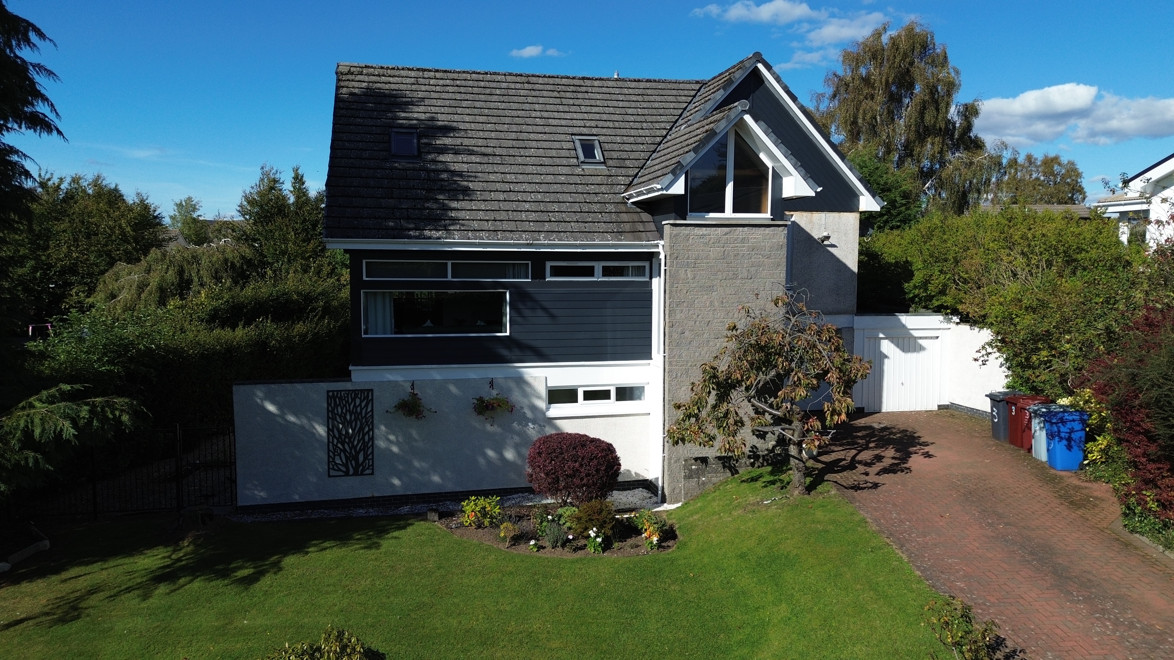 Individually designed, contemporary family home situated within a sought after cul-de-sac location in the popular market town of Lanark. This substantial and deceptively spacious property occupies a generous plot and offers flexible living accommodation arranged over three split level floors. It’s been the clients family home for many years and they extended the property some time ago to accommodate themselves and their family comfortably.