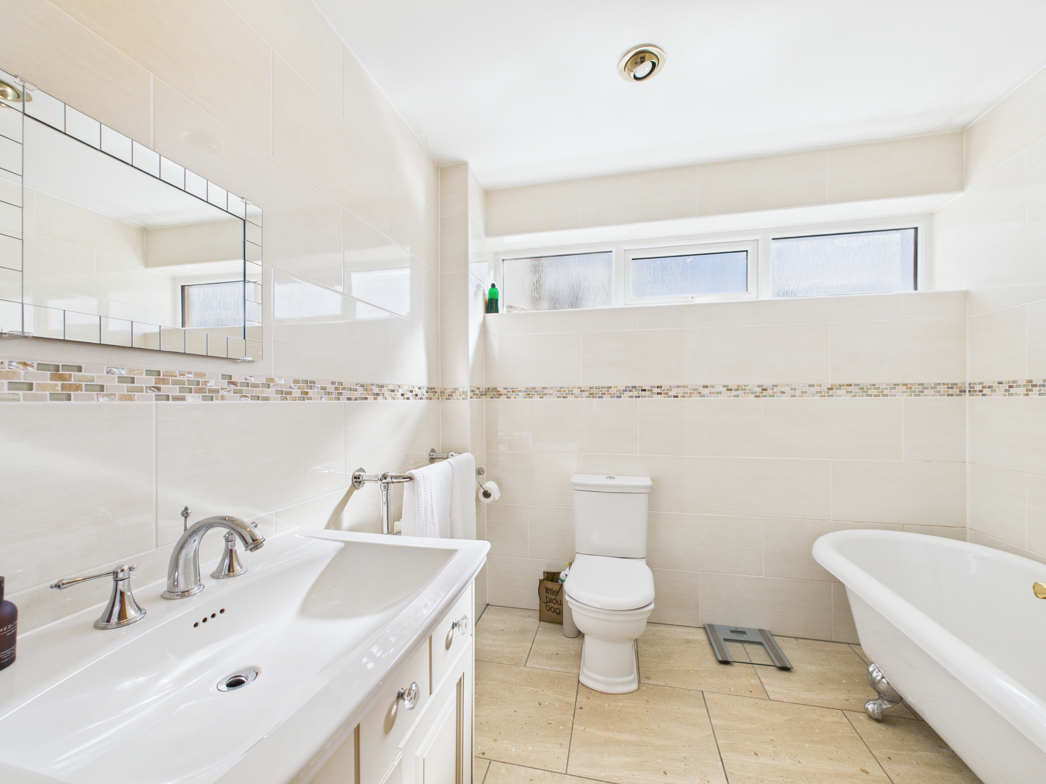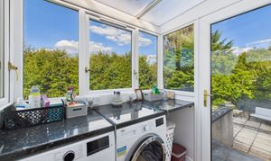 On the ground floor there are three well-proportioned bedrooms with one en-suite shower room, family bathroom and large conservatory which gives access to the rear garden.