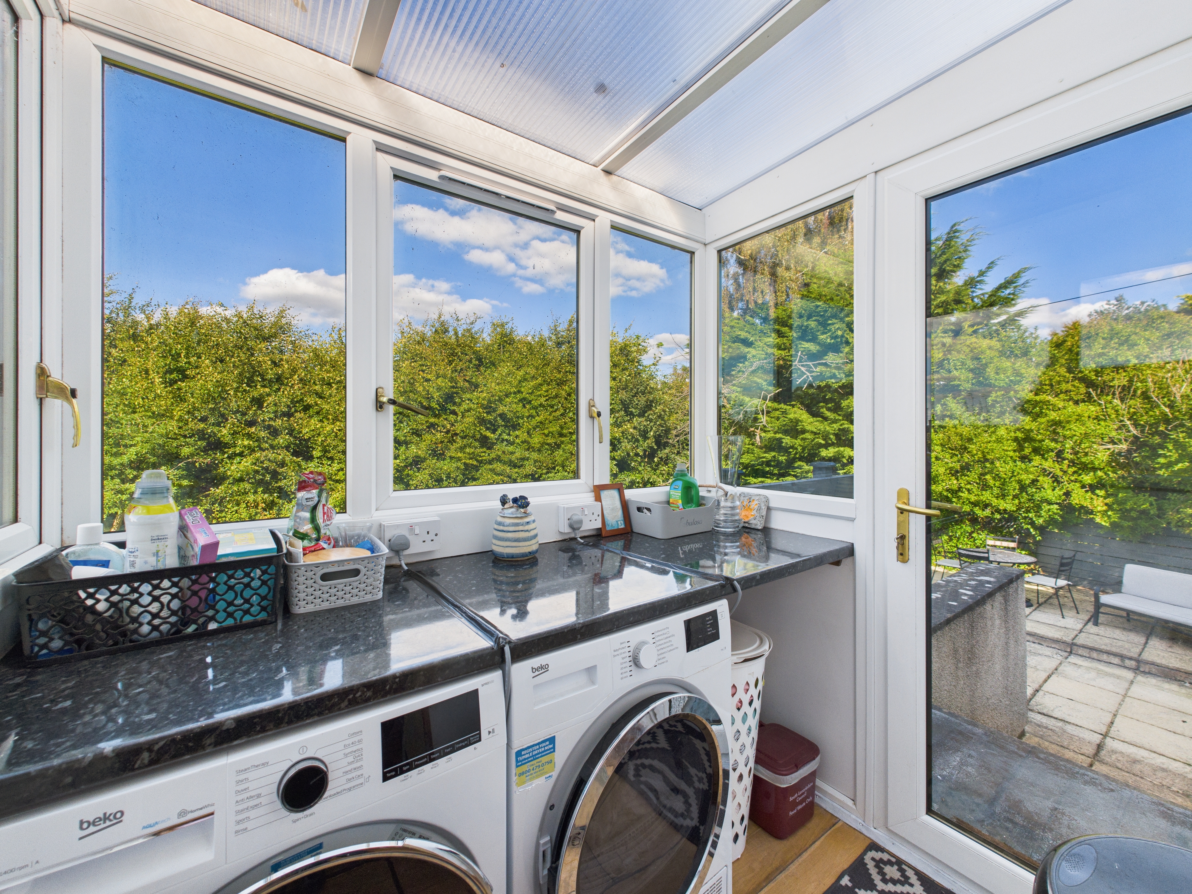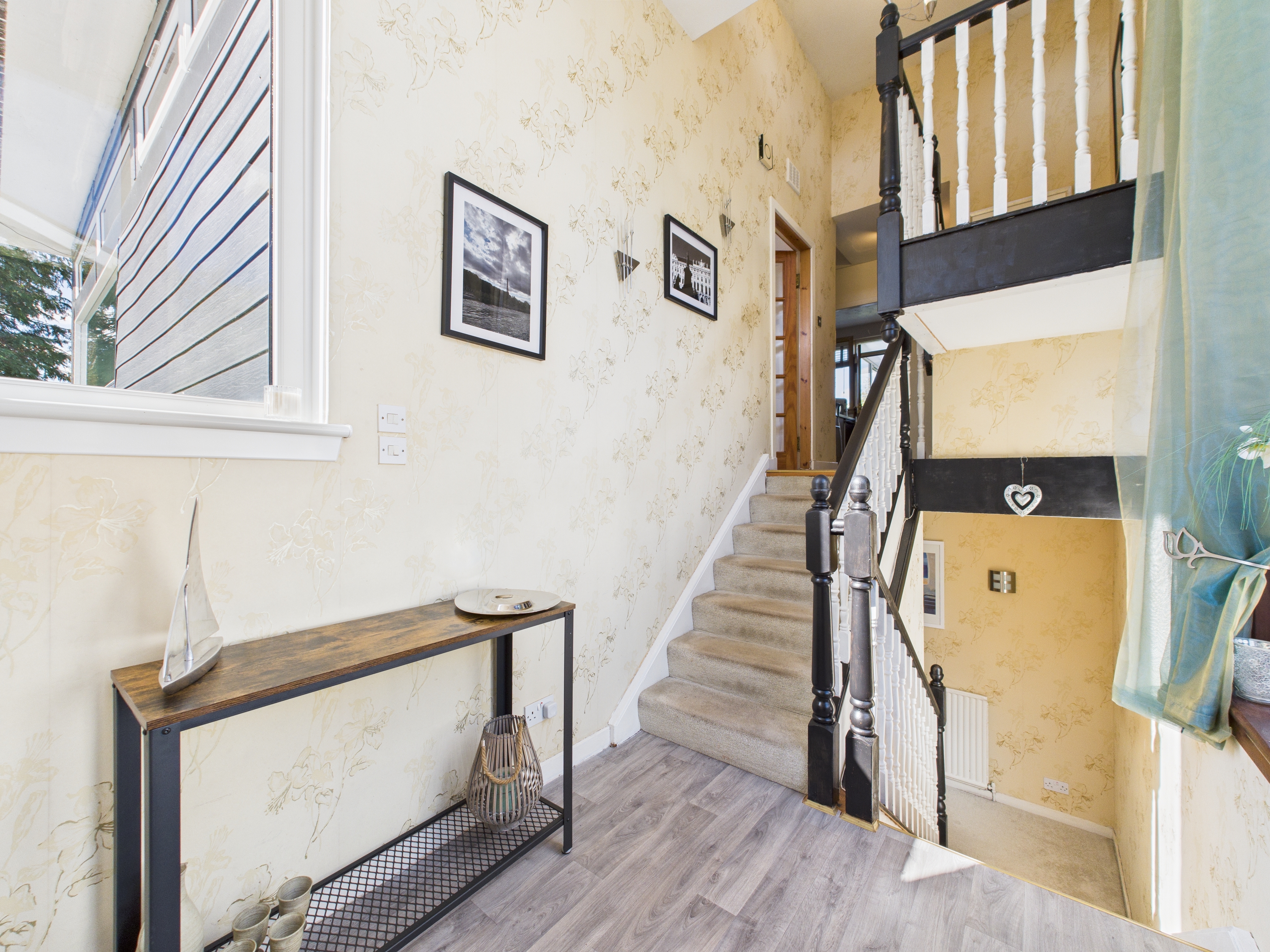 The property is entered from the front into a welcoming, half landing hallway with stairs leading to the ground and first floor. The house has been designed with most of the living accommodation on the first floor with large feature windows providing excellent views over the surrounding gardens. The first floor comprises; spacious lounge, dining room, kitchen, separate utility room and double bedroom. Off the landing is a spiral staircase which leads to a wonderfully spacious double bedroom with en-suite shower room and great built-in storage.