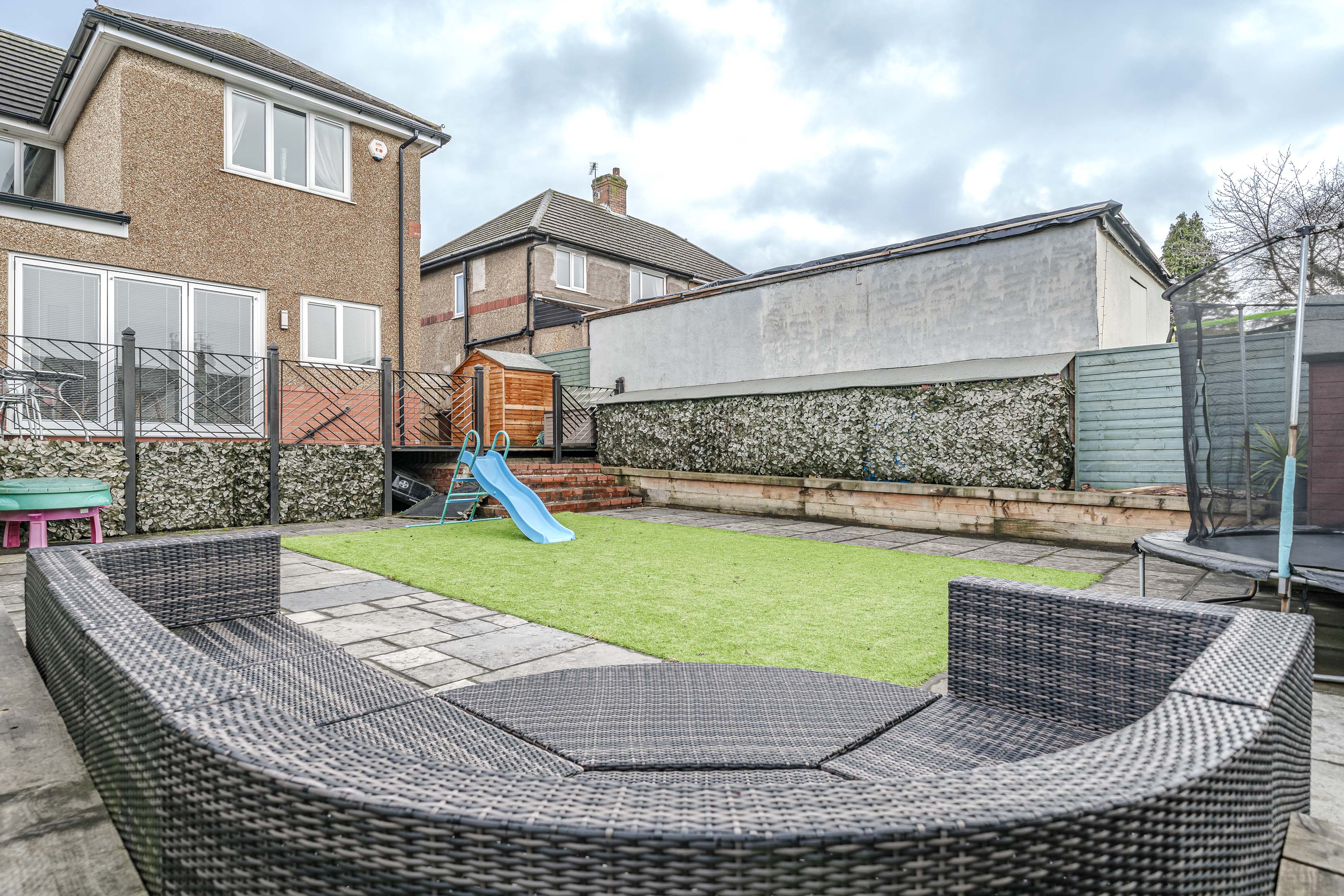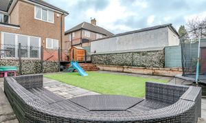 Externally, the property continues to impress. The rear garden has been designed with ease of maintenance in mind and enjoys a wonderful balance of decked seating, paved entertaining space and artificial lawn, making it ideal for children, summer dining and relaxed outdoor living. There is also a useful detached outbuilding/store, together with off-road driveway parking to the side.