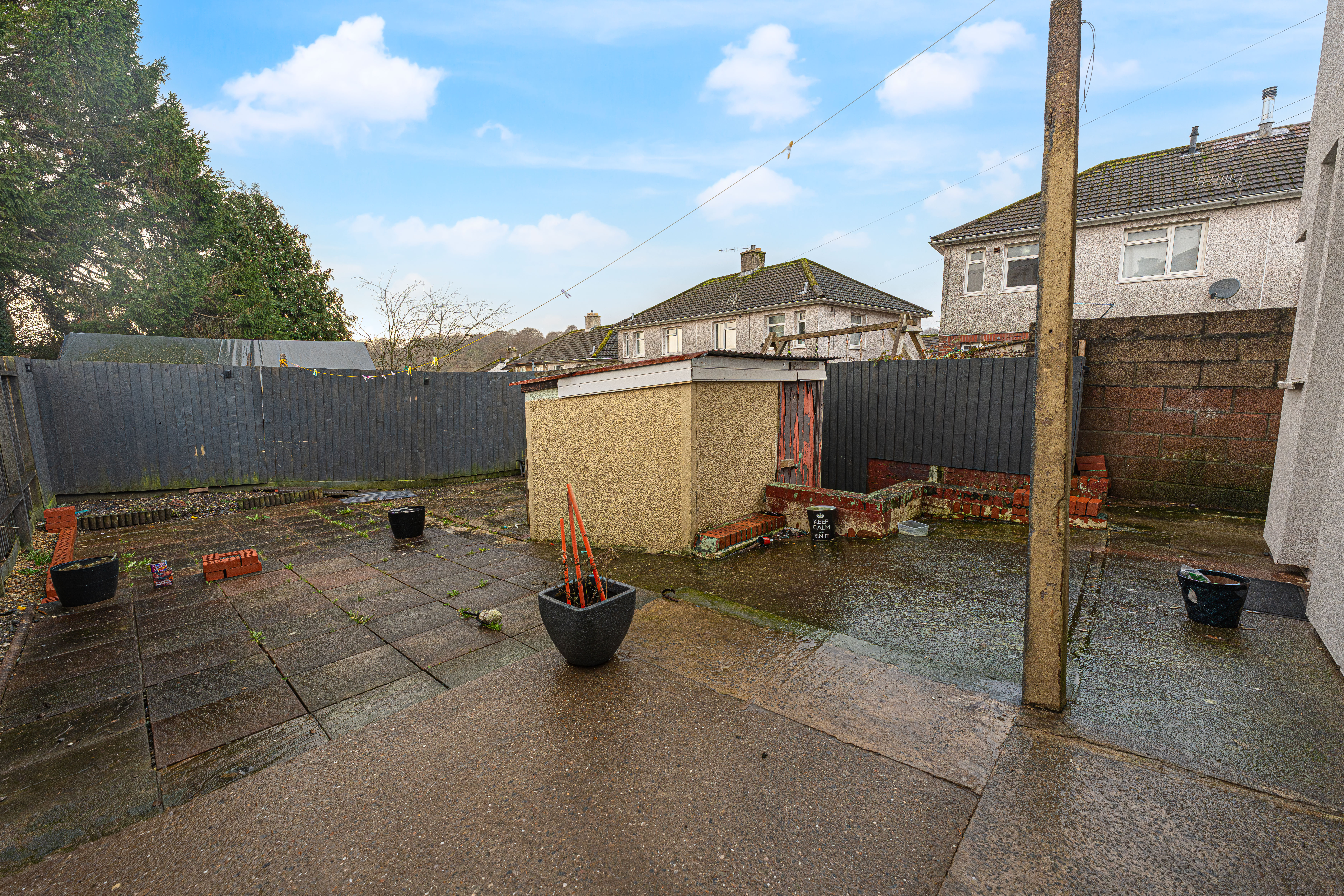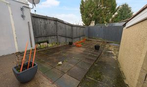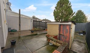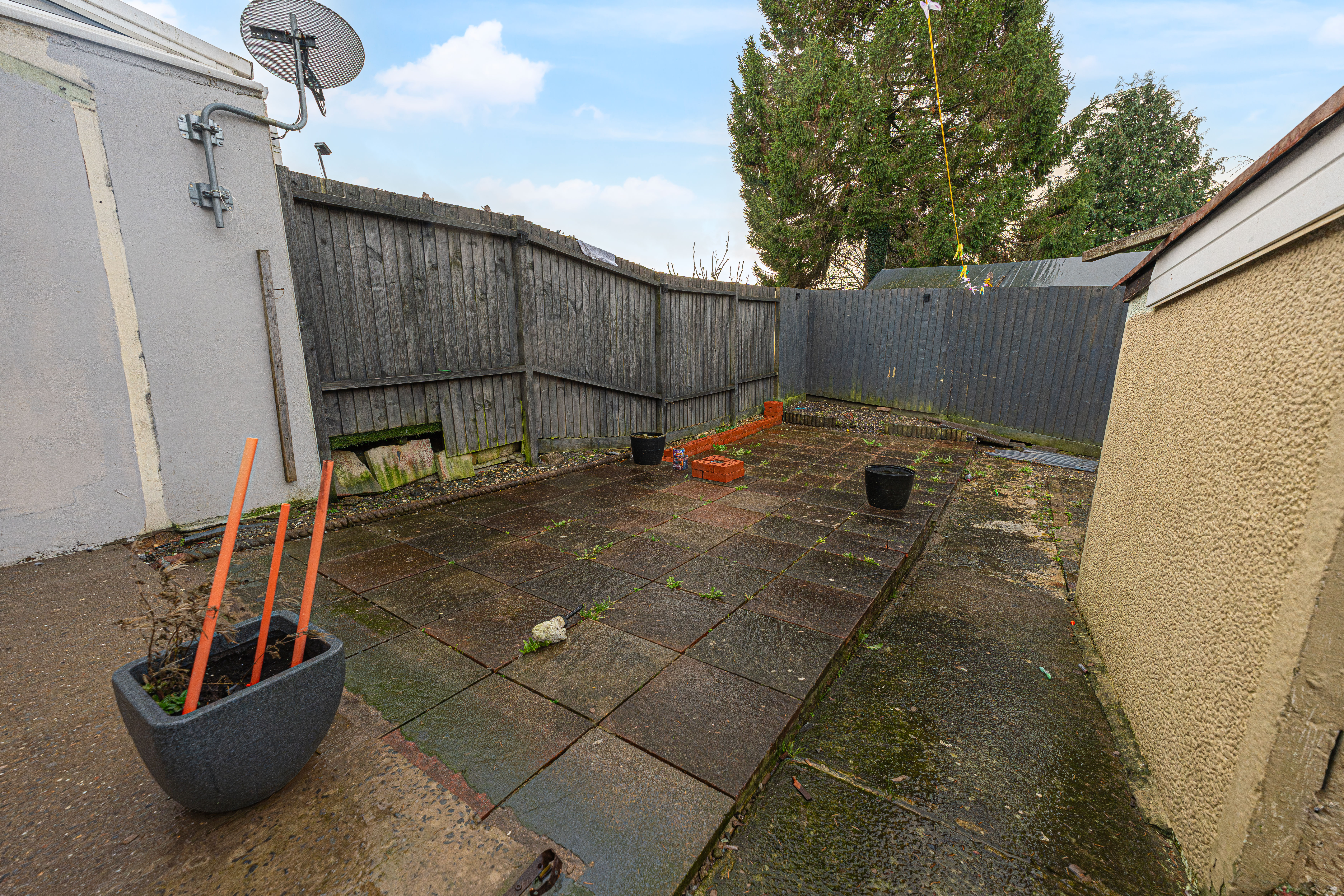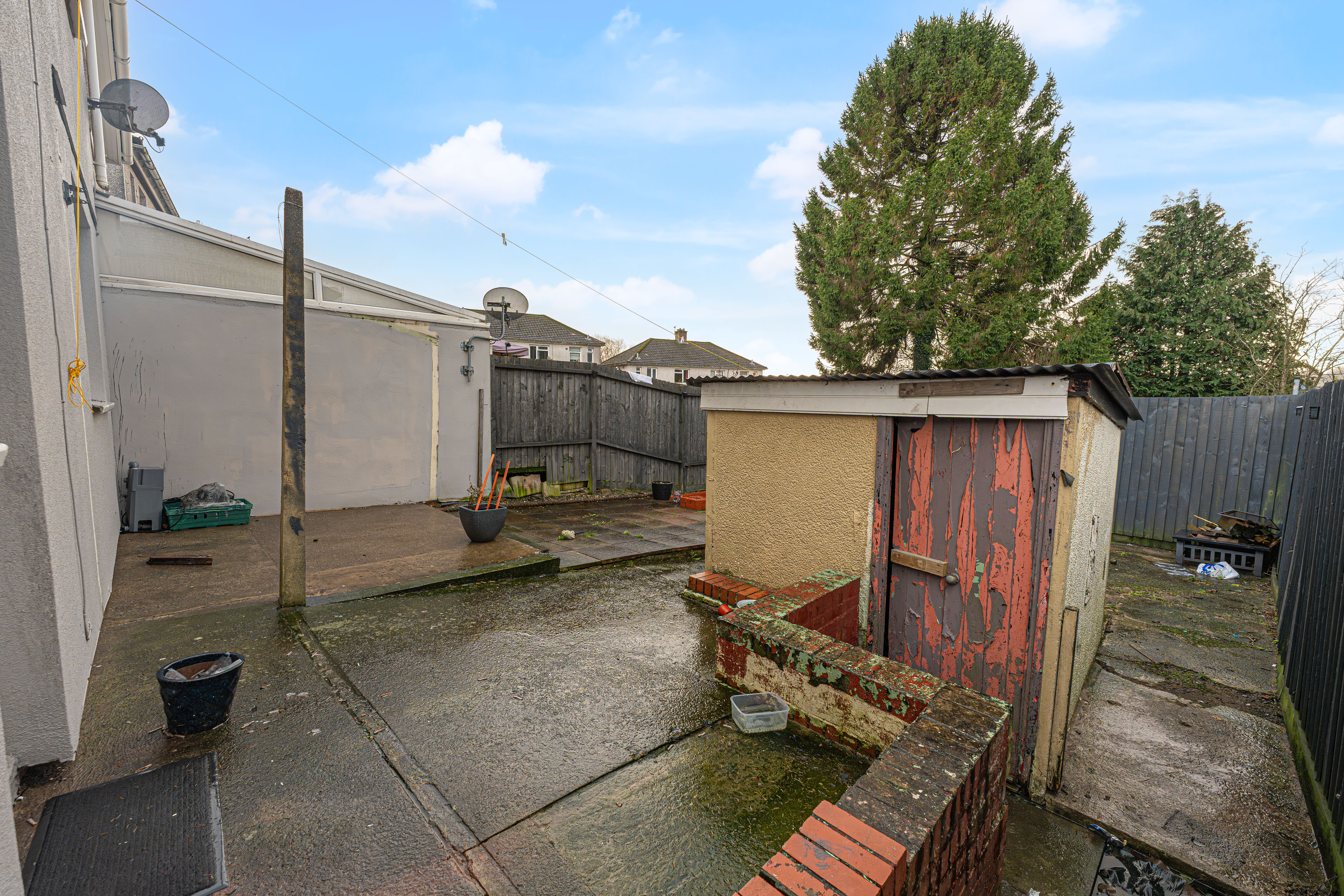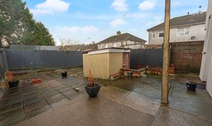 At the rear of the house we have the fully enclosed rear garden, which offers an abundance of outdoor space with a large paved patio, providing an ideal area for lounging in the sunshine and welcoming guests for tea/coffee and dining al-fresco style. The garden also features a storage shed for additional practicality, and a doorway for side access, while at the front of the house there is a driveway for easy off-road parking.