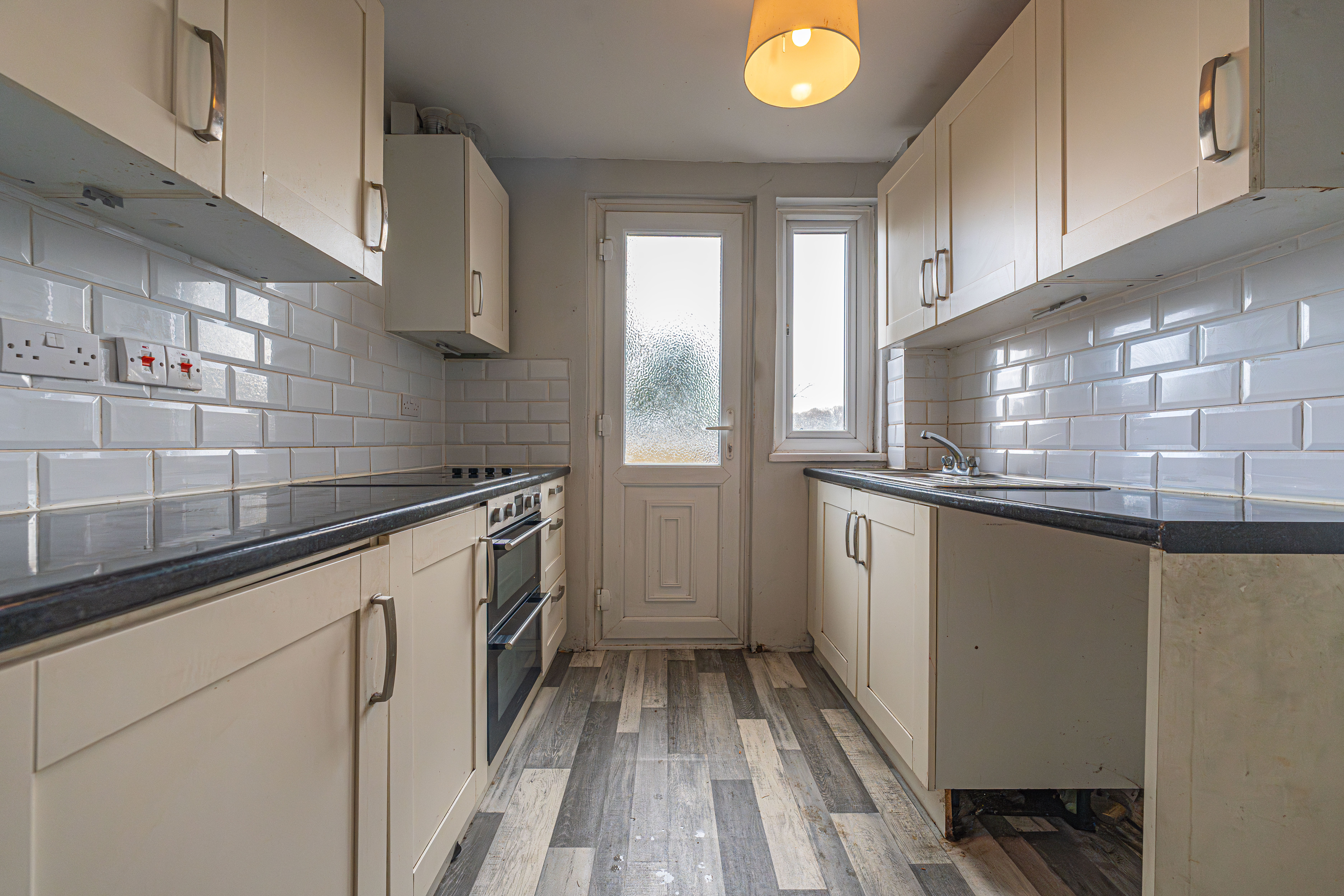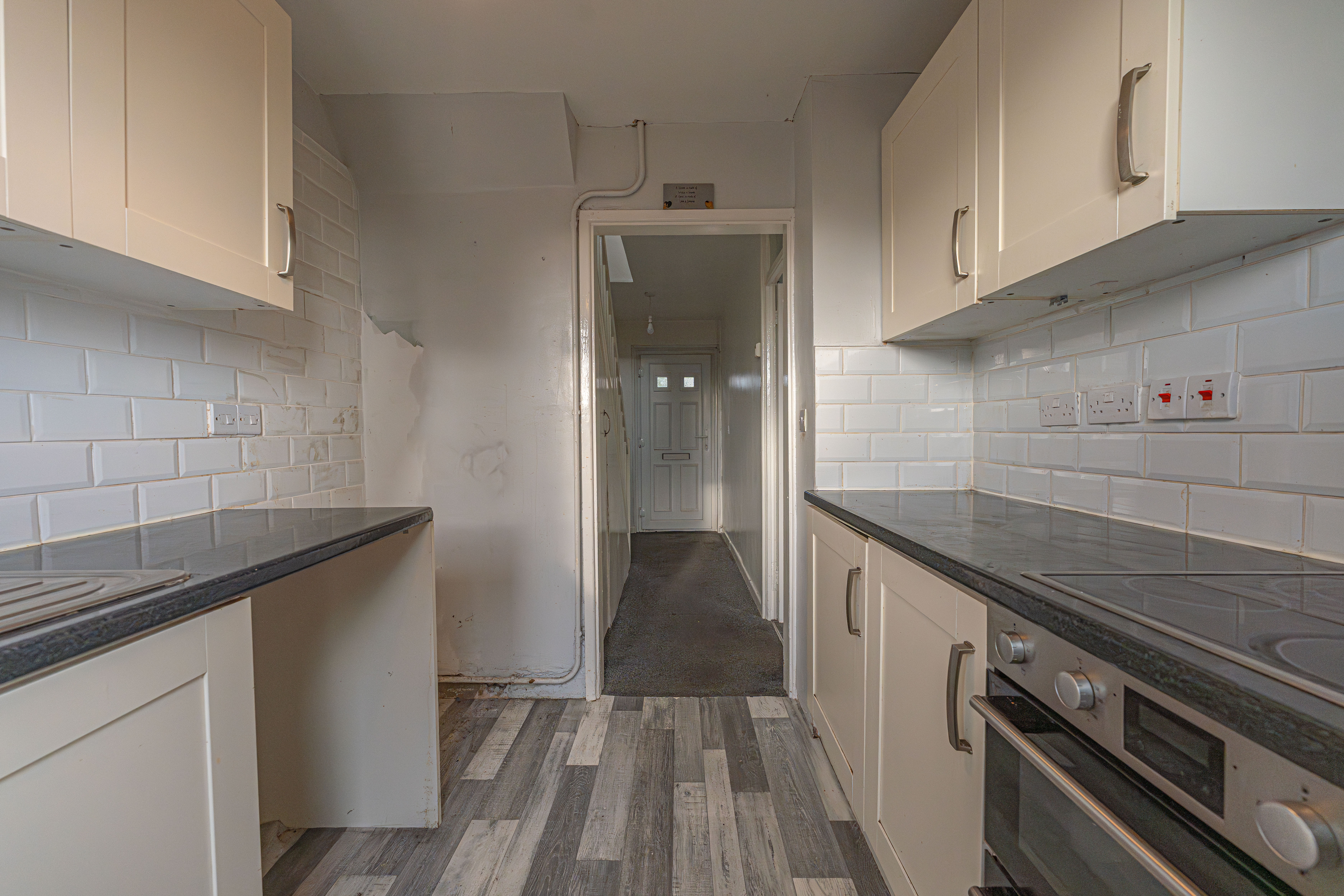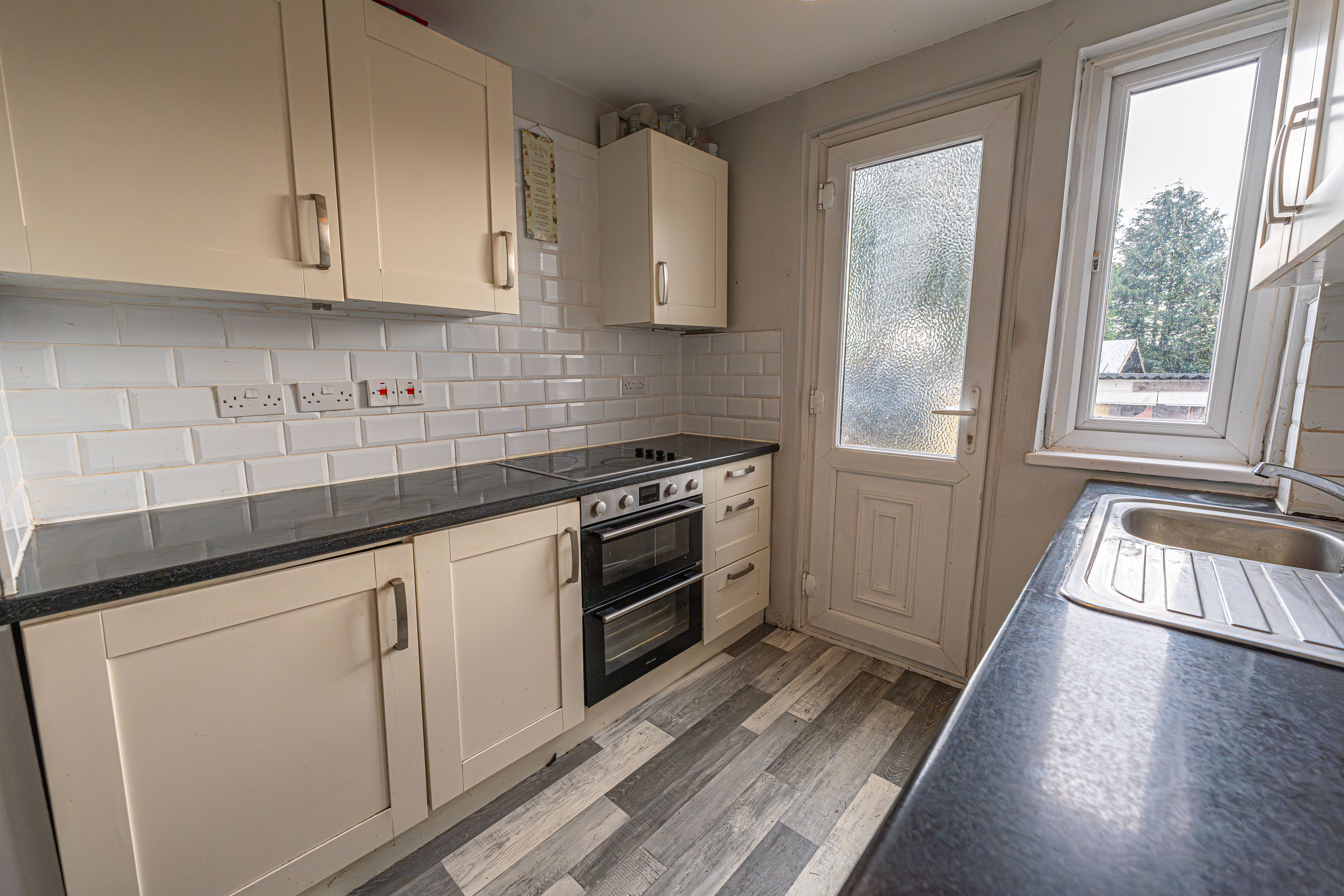 At the rear of the house we have the fully enclosed rear garden, which offers an abundance of outdoor space with a large paved patio, providing an ideal area for lounging in the sunshine and welcoming guests for tea/coffee and dining al-fresco style. The garden also features a storage shed for additional practicality, and a doorway for side access, while at the front of the house there is a driveway for easy off-road parking.