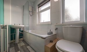 Ascending to the first floor we have three bedrooms, two of which are generously sized double rooms - including one with a fitted airing cupboard, while the third bedroom is a comfortable single and is equipped with shelving, and would be great for a home office, dressing room or nursery. The family bathroom from the landing features a toilet, bath suite and overhead shower.