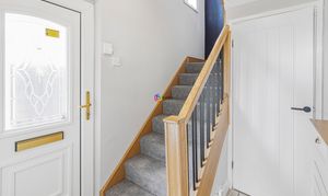 The door leads you into a hall which has a door to the understairs utility area and a useful cupboard for coats and shoes. With the modern light oak handrail and stringers its a grand approach to the house.