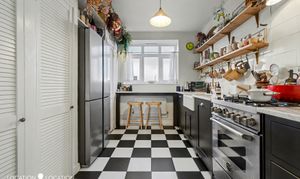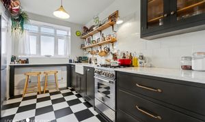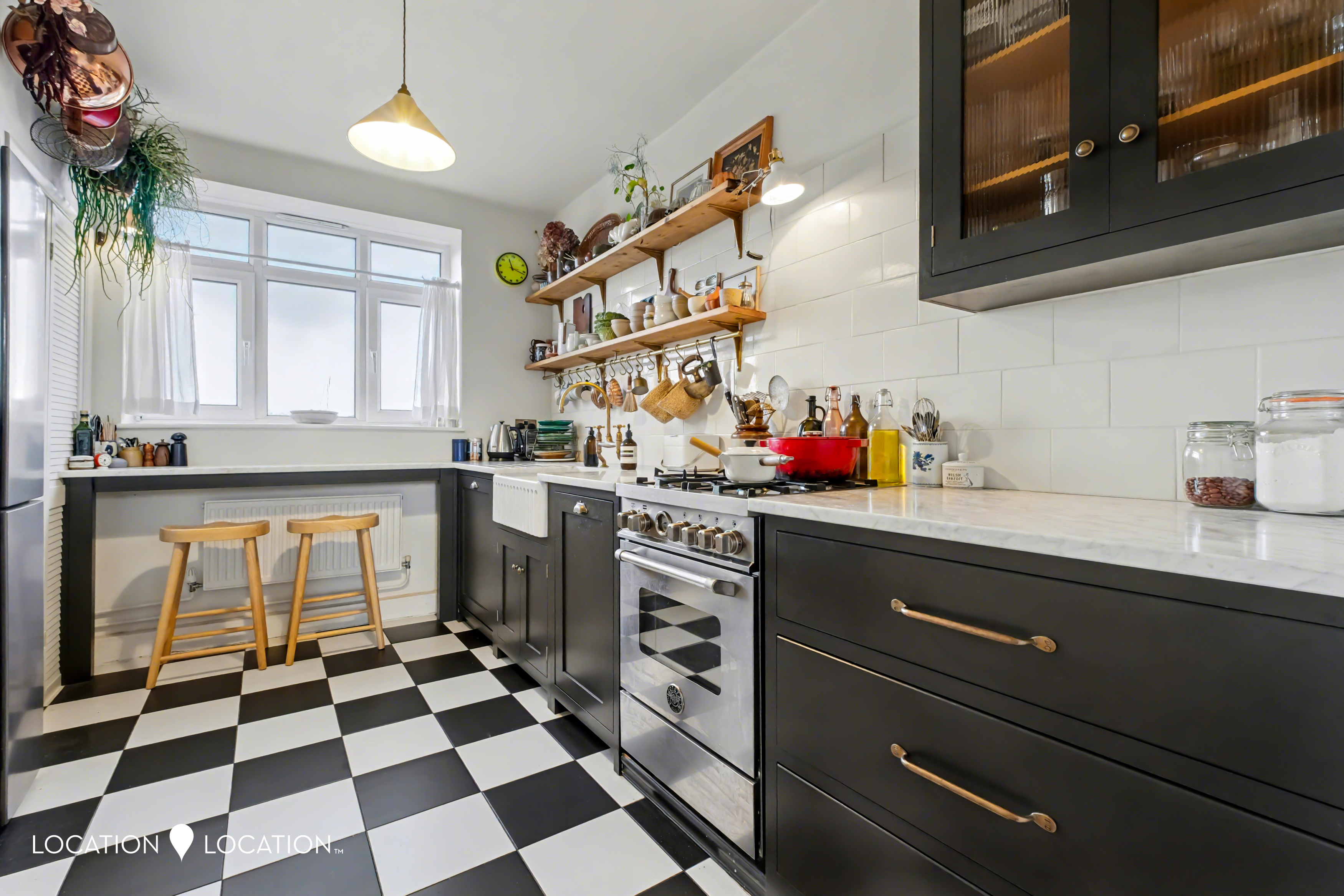 The home has been lovingly refurbished to a beautiful spec, starting with the deVol kitchen- a rarity to see in a first time buyers home, with brass details and Carrara marble adding a touch of luxury. This seamlessly connects to the separate reception room which benefits from the private south-east facing balcony-perfectly capturing the sunlight from morning until afternoon. The property further comprises; two generous double bedrooms- both with build in wardrobes, a three piece bathroom suite, separate wc and plenty of useful storage space in the hallway.